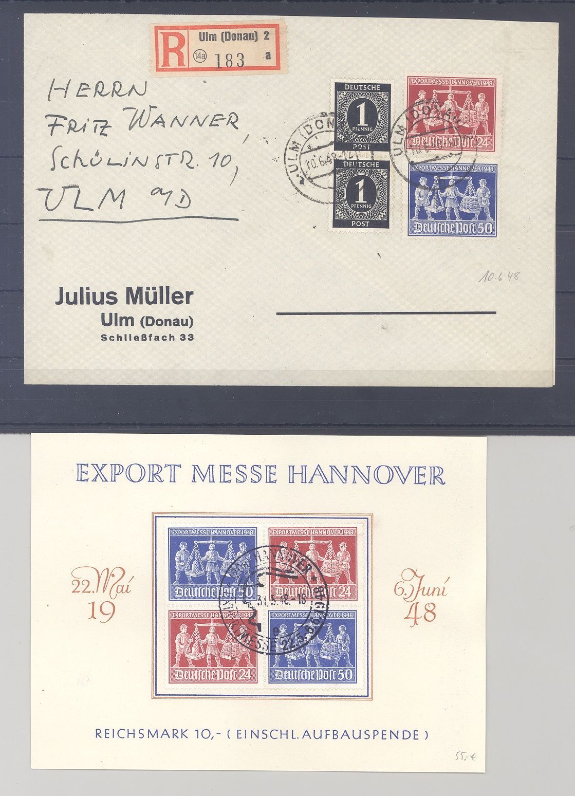 Alliierte Besetzung Exportmesse, drei Belege mit auch einem FDC, wertet mit 150,00 Euro als Posten. Nette Ergänzung zur Sammlung.