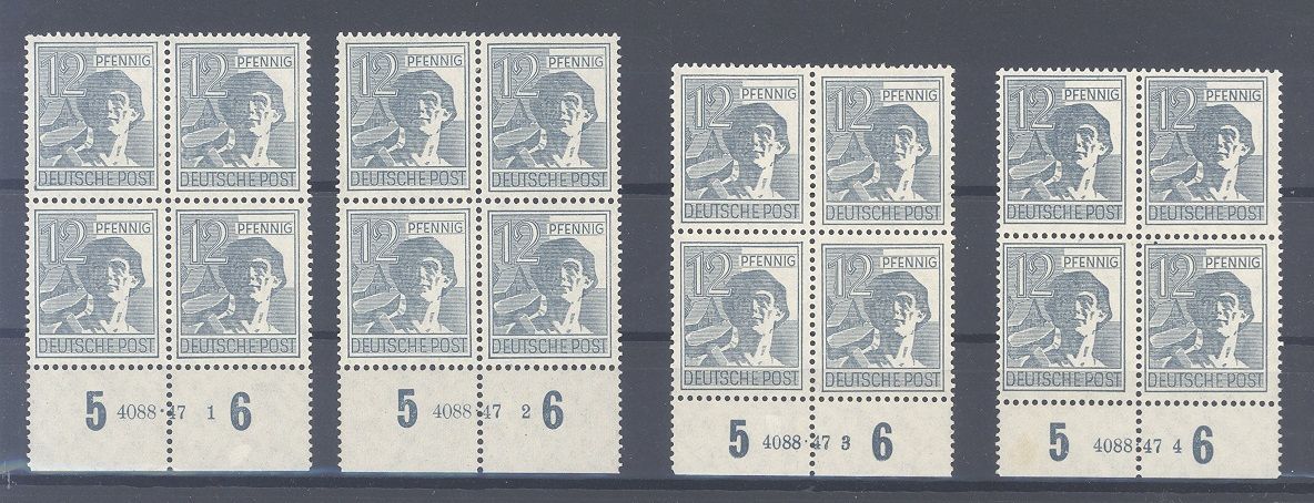 Alliierte Besetzung Michel Nummer 947, 12 Pfg. Freimarke 1947 als */**, meist ungebrauchte * HAN Paare mit den guten HAN 4088 47 - 1/4, ein Wert hat im Unterrand ein Fleckchen sonst ordentlich, werten für ** mit ca. 1.000,00 Euro...
