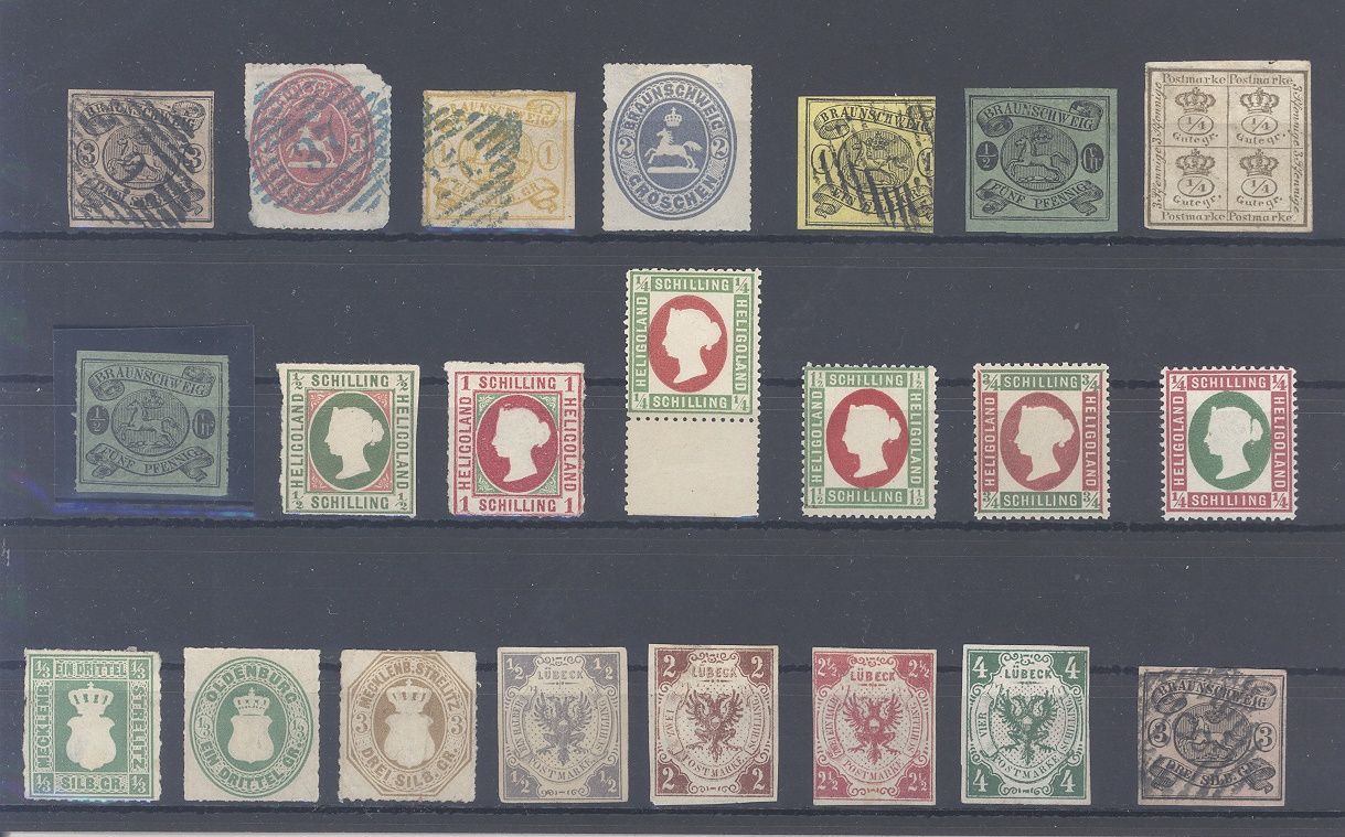 Altdeutschland, interessanter Posten kleiner Staaten auf Steckkarte in wie üblich unterschiedlicher Erhaltung, einfach zusammengesteckt. Vollkommen unberechnet, sollte ein nettes Schnäppchen sein!