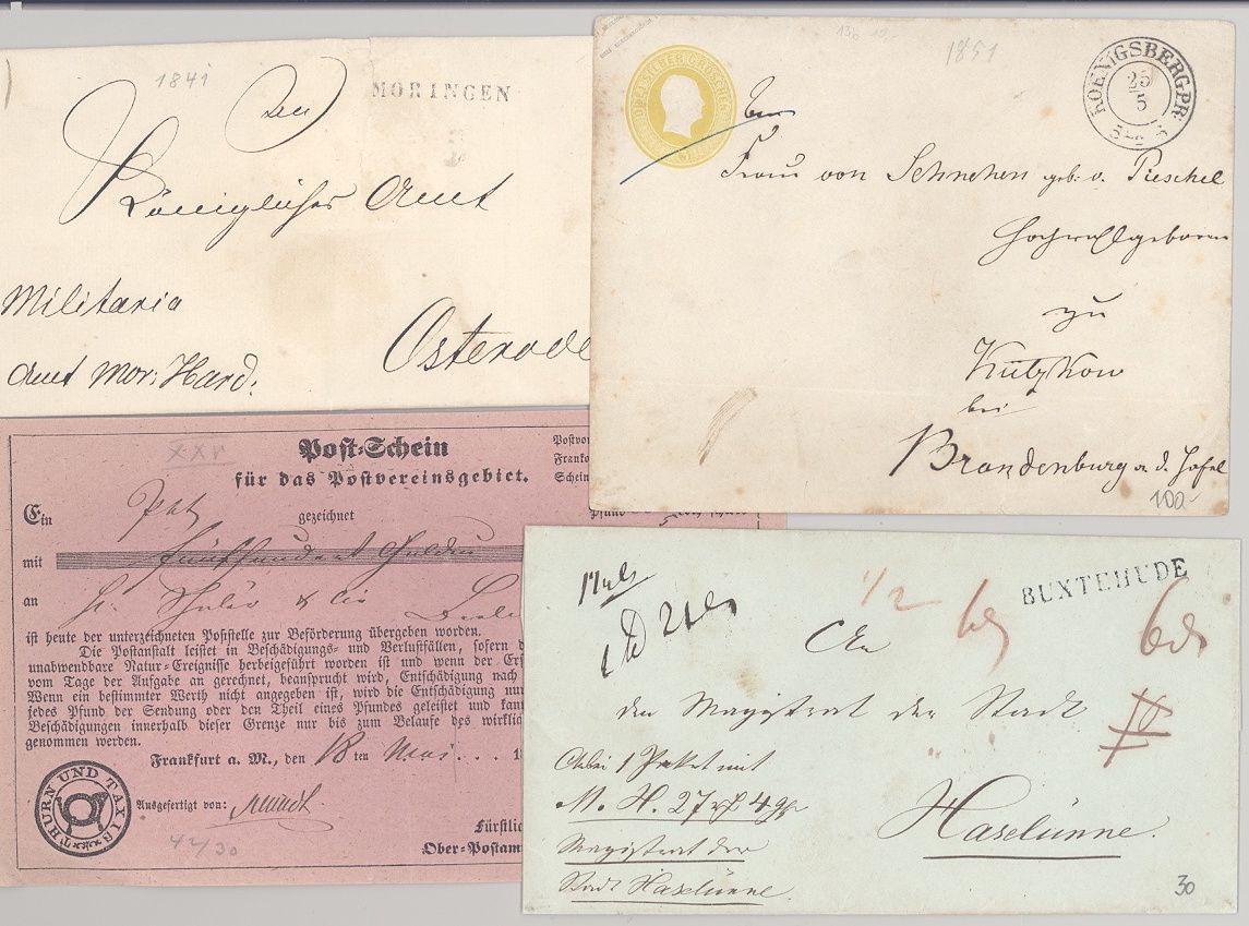 Altdeutschland, umfangreicher Belege Posten bestehend aus 18 Belegen, dabei Postschein, kleine Staaten,.. Nette Ergänzung zur Sammlung!