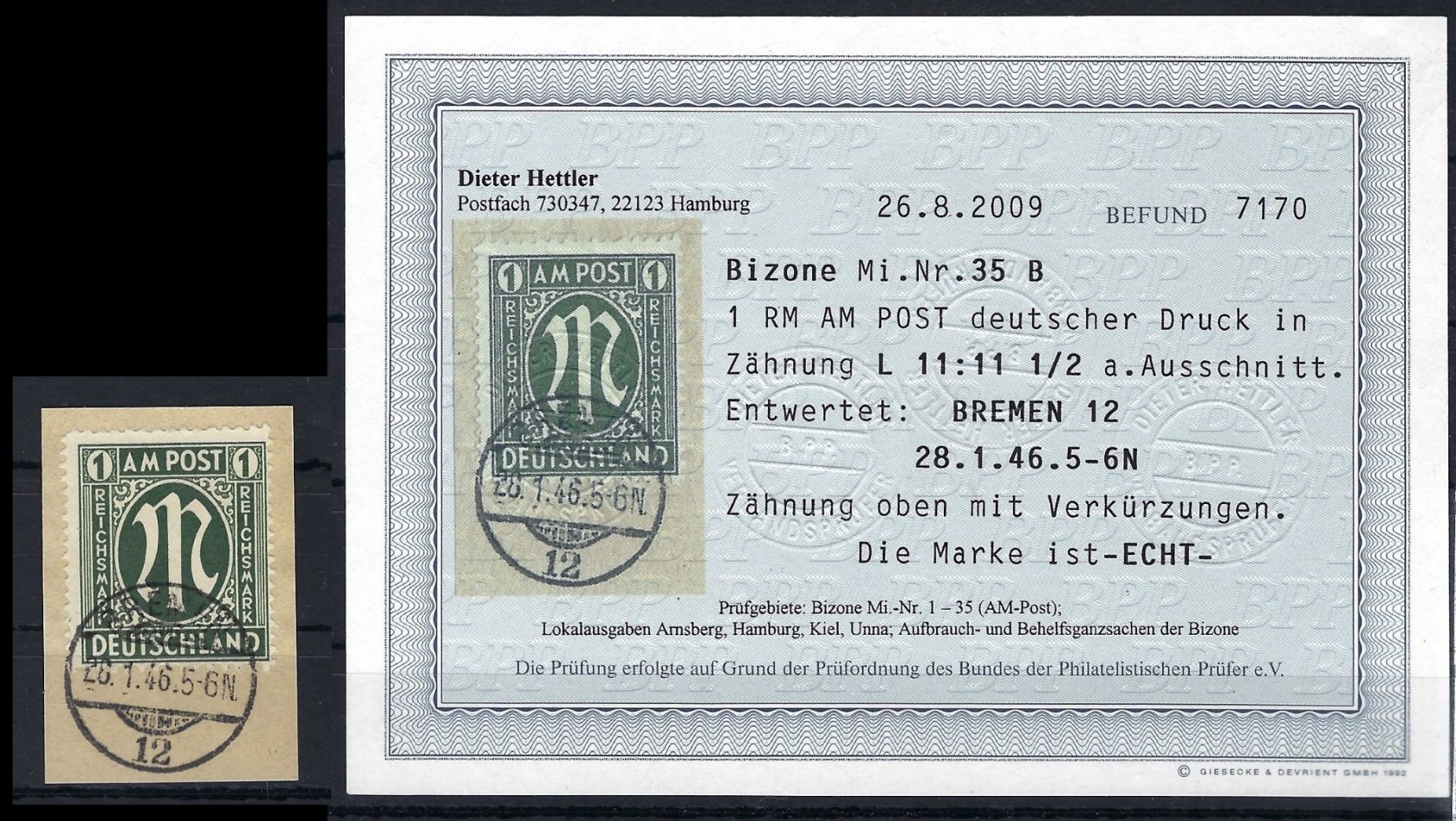AM Post Mi 35 B auf Briefstück sauber gest., Befund Heitler BPP