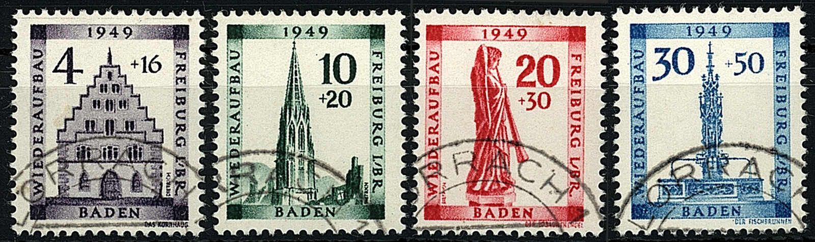 Wiederaufbau der Stadt Freiburg im Breisgau 1949, kompletter sauber gestempelt ,,LÖRRACH", tiefst geprüft Schlegel BPP. Mi. 200,-€.
