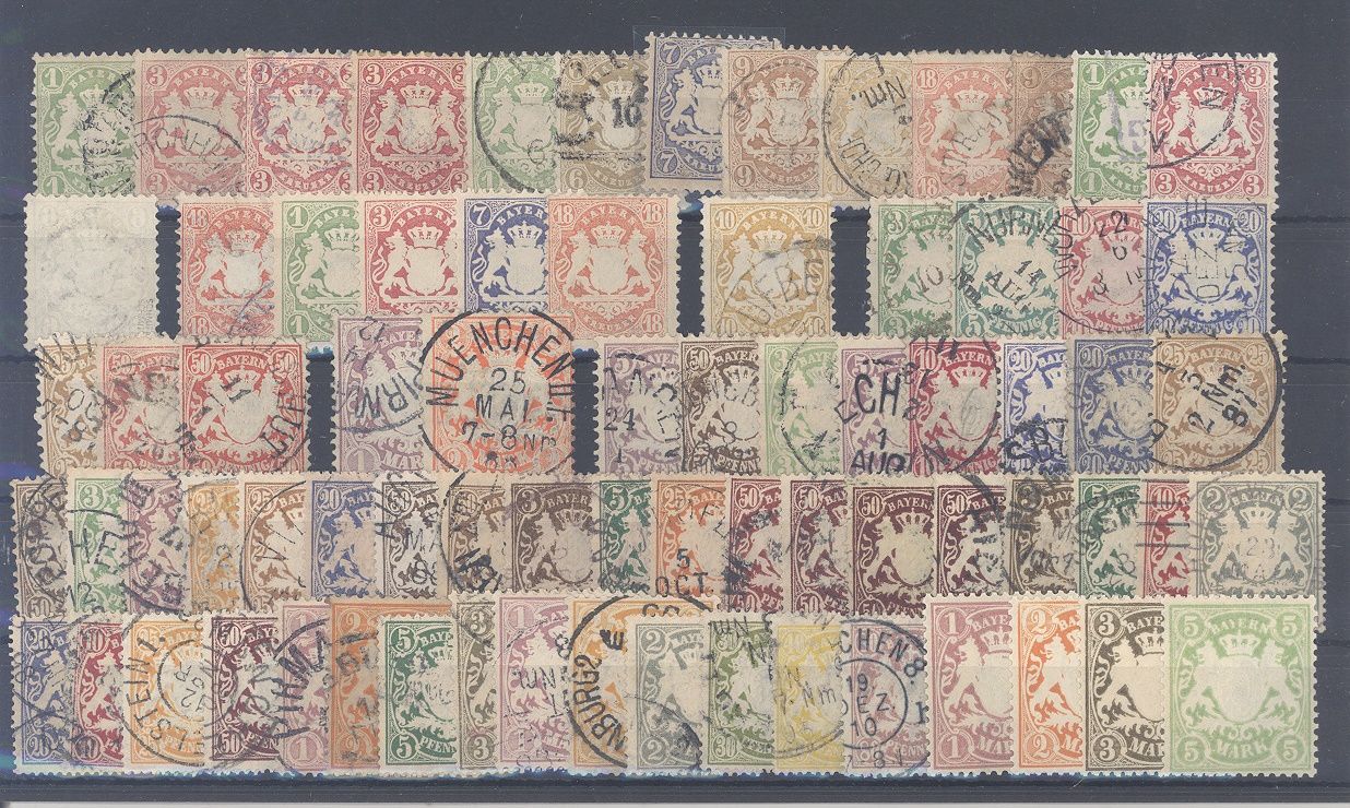 Bayern, allermeist */gestempelter Posten ab Wappenausgaben mit auch besseren Werten und Sätzen wie Michel 24x geprüft BPP, 43/44 und 71/74 ungebraucht *, diese werten bereits mit 265,00 Euro, einfach zusammengesteckt. Sollte ein nettes Schnäppchen sein