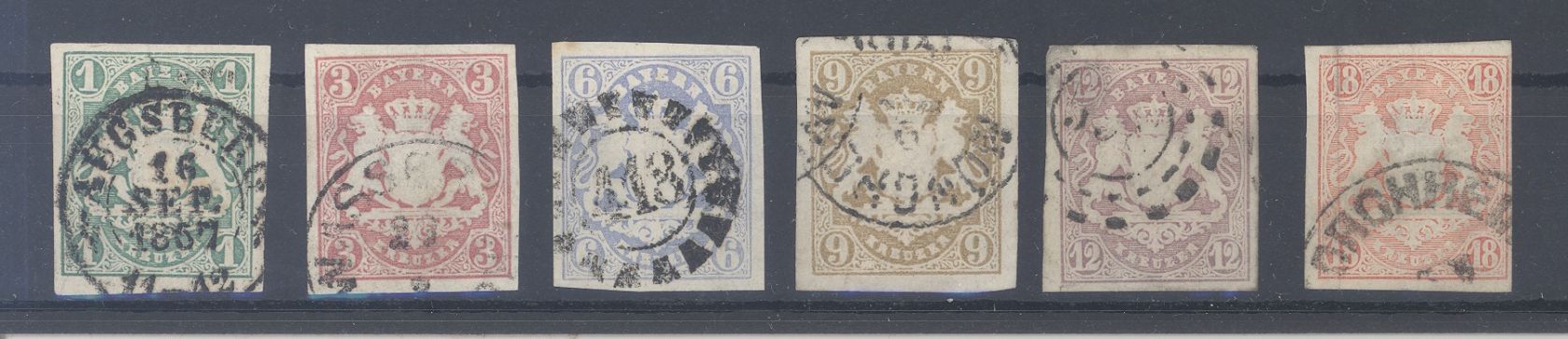 Bayern Michel Nummer 14/19, Freimarken 1867 gestempelt.