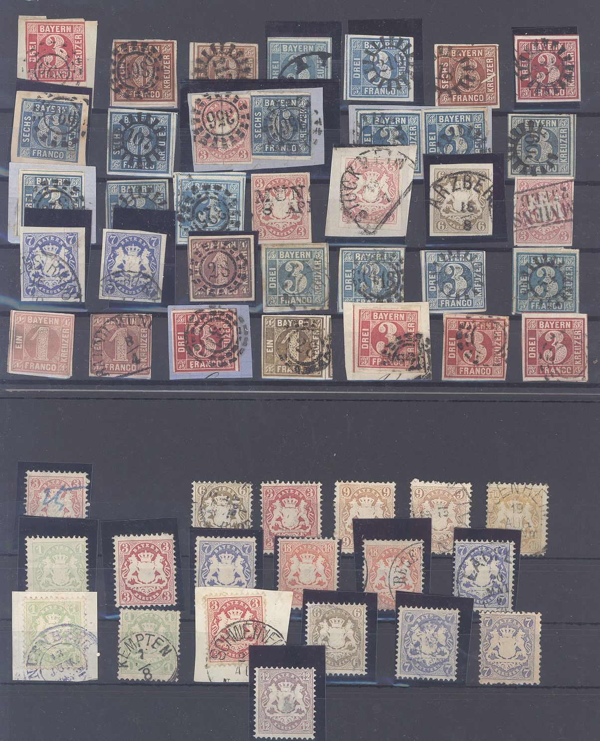Bayern, recht umfangreicher Posten Kreuzerausgaben in unterschiedlicher Erhaltung mit auch einer ungebrauchten (*) Mi.Nr. 26 auf zwei Steckkarten, einfach zusammengesteckt. Vollkommen unberechnet, sollte ein nettes Schnäppchen sein...