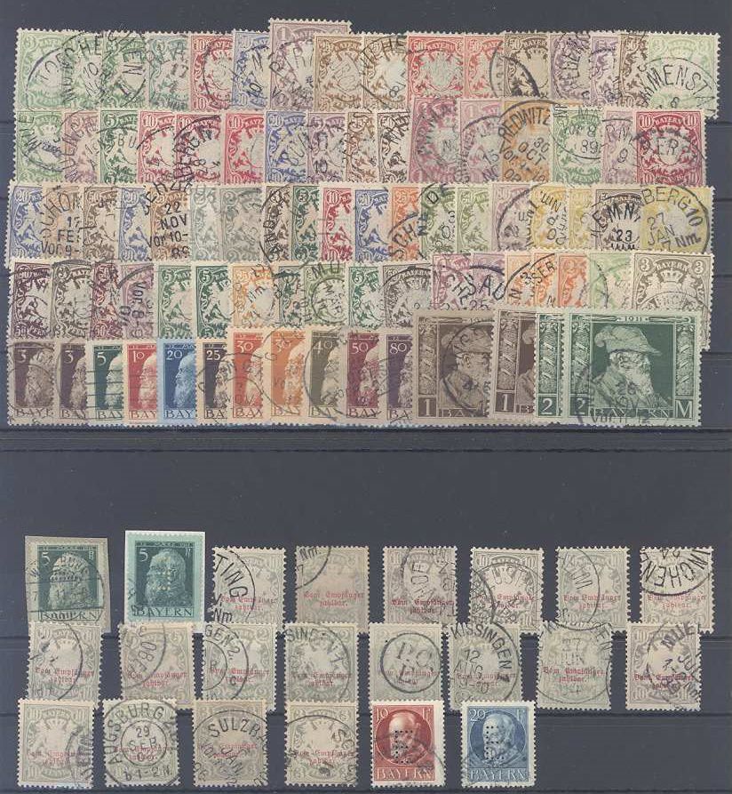 Bayern, umfangreicher Posten ab Wappenausgaben auf zwei Steckkarten, einfach zusammengesteckt, stammt aus einer alten Sammlung .Dabei schon auf dem ersten Blick verschiedene Farben und Typen, wunderbare Stempel,.vollkommen unberechnet, sollte ein nettes Schnäppchen sein!