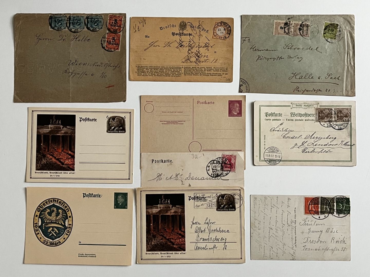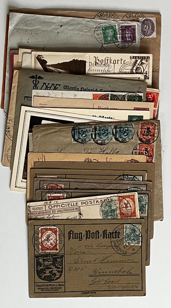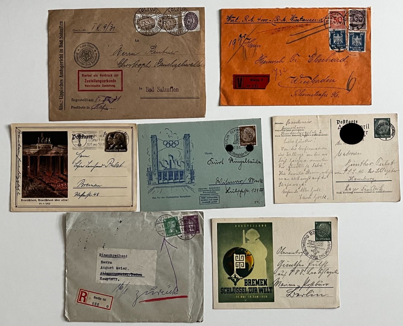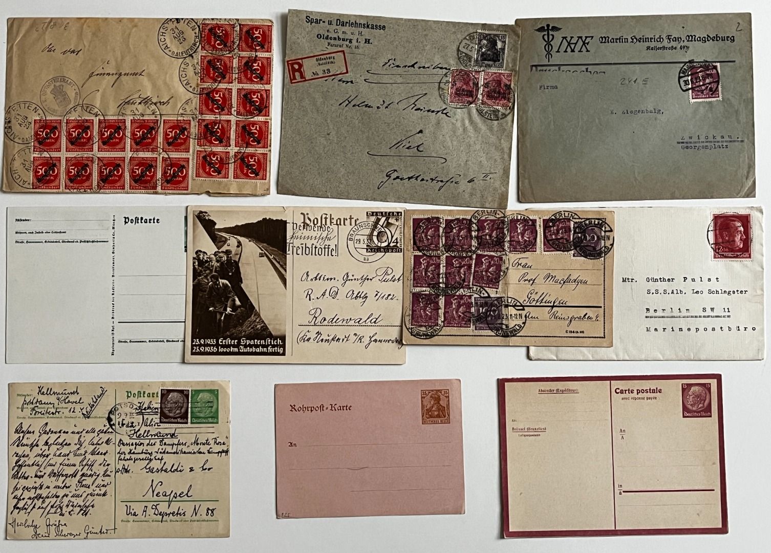 Umfassende Belegepartie mit ausschließlich deutschen Belegen von 1945, darunter unter anderem 6 Flugpostbelege Mi I (5) und Mi 2 (I). Unterschiedliche Qualität