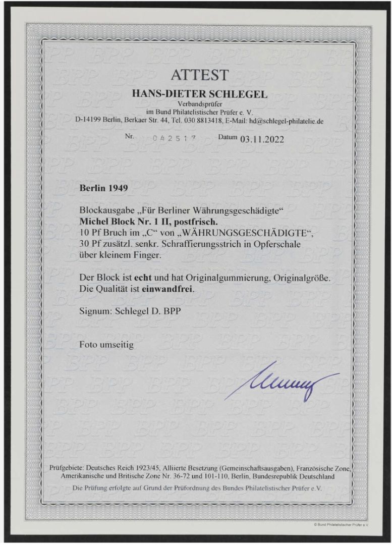 Berlin Block 1 ** mit PF II, einwandfrei mit FA Schlegel BPP