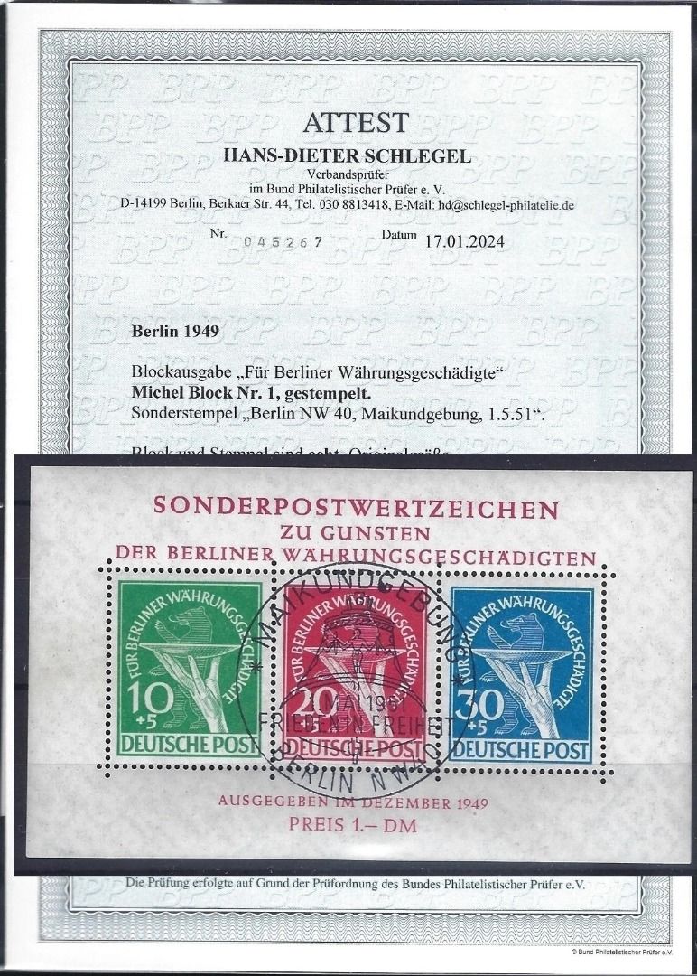 Berlin Block 1 mit SoSt Maikundgebung, einwandfrei, FA Schlegel BPP