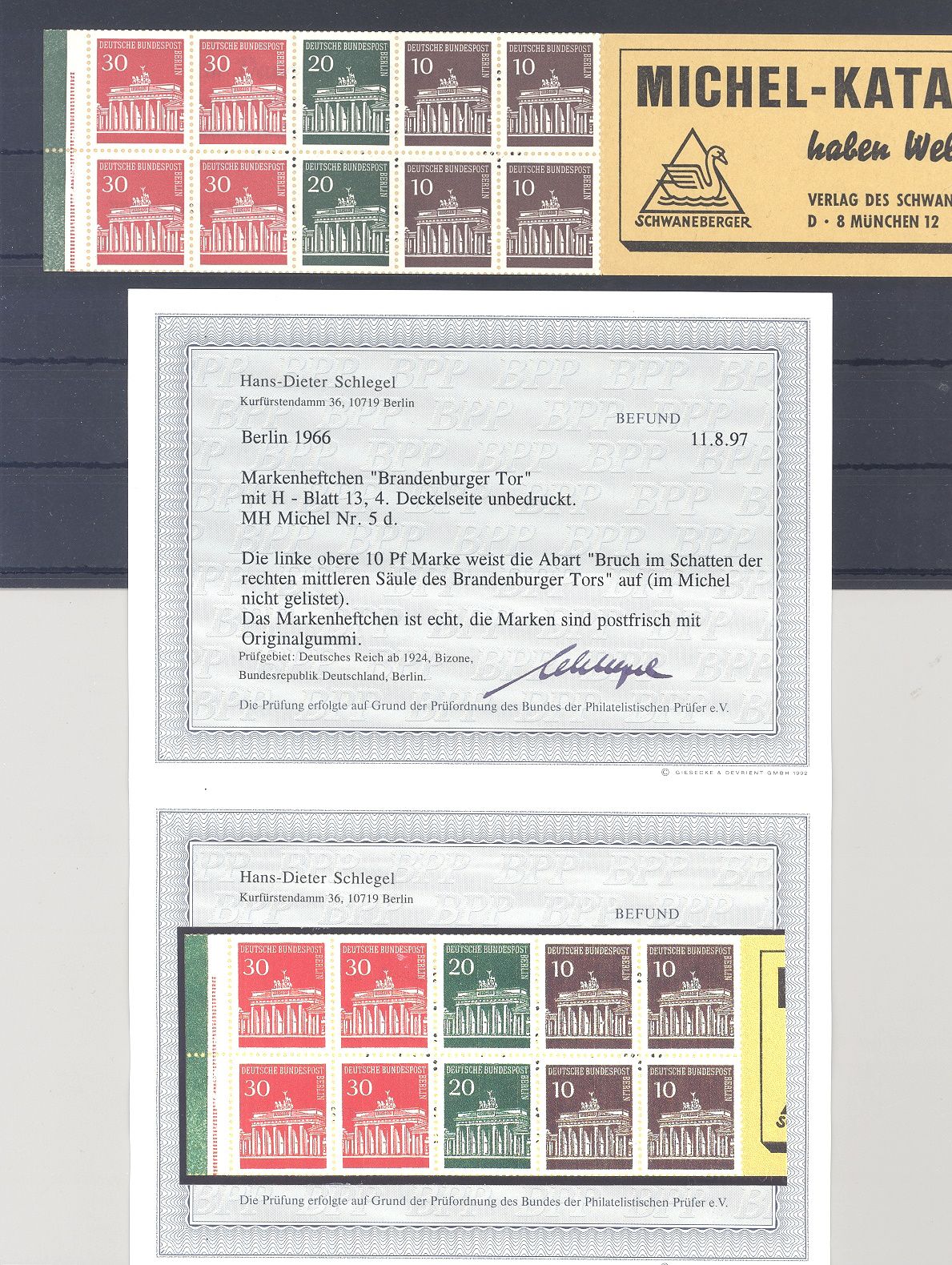 Berlin Markenheftchen Brandenburger Tor 1966 Plattenfehler III **, FA BPP