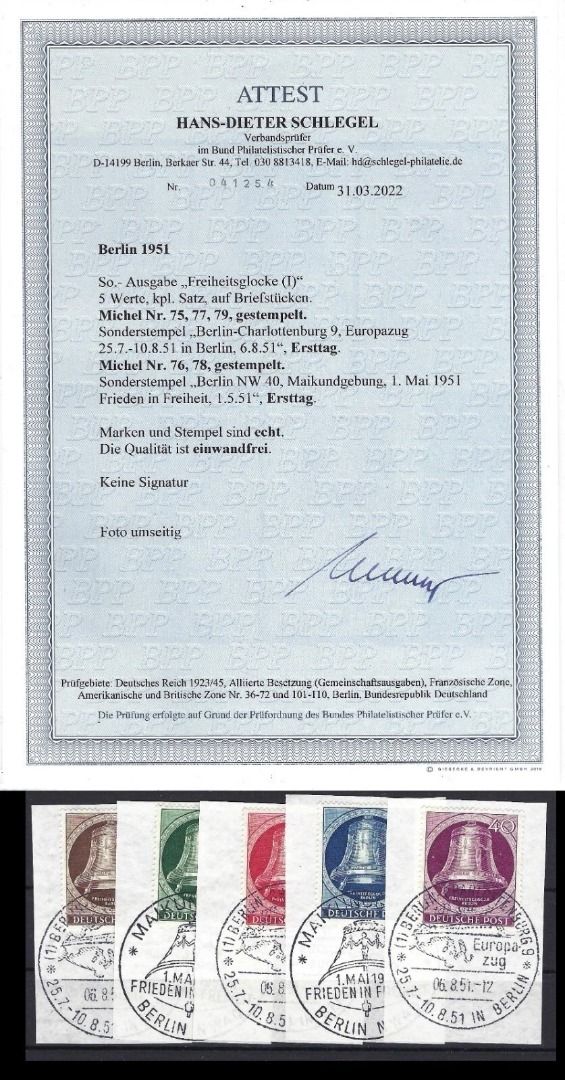 Berlin Mi 75-79 je auf Luxus auf Briefstück mit ESST, FA Schlegel BPP, sehr SELTEN !