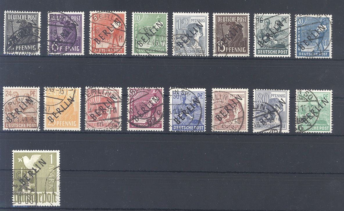 Berlin Michel Nummer 1/17 aus dem Schwarzaufdruck 1948 Satz gestempelt. Jeder Wert ist geprüft BPP.