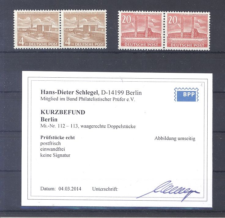 Berlin Michel Nummer 112/13, Bauten II in ** Paaren, sehr schöne Einheiten. Es liegt ein Befund BPP vor, ist mit eingescannt, hat bereits einiges gekostet.