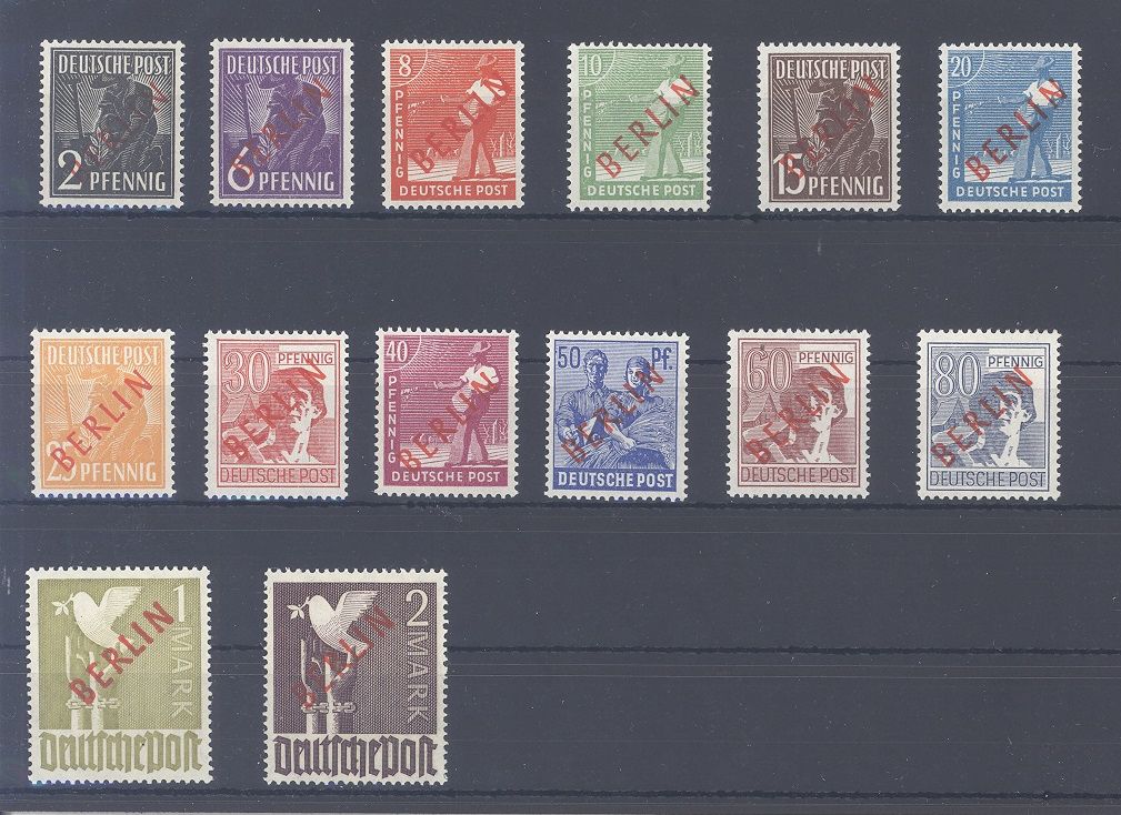 Berlin Michel Nummer 21/34 Rotaufdruck 1949 **. Jeder Wert ist geprüft BPP.