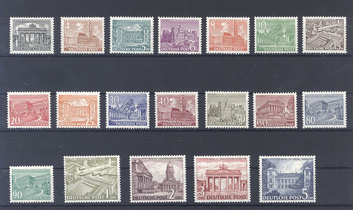 Berlin Michel Nummer 42/60, Bauten 1949 **/*. Die 3 Mark Freimarke ist ungebraucht, die anderen Werte sind **.
