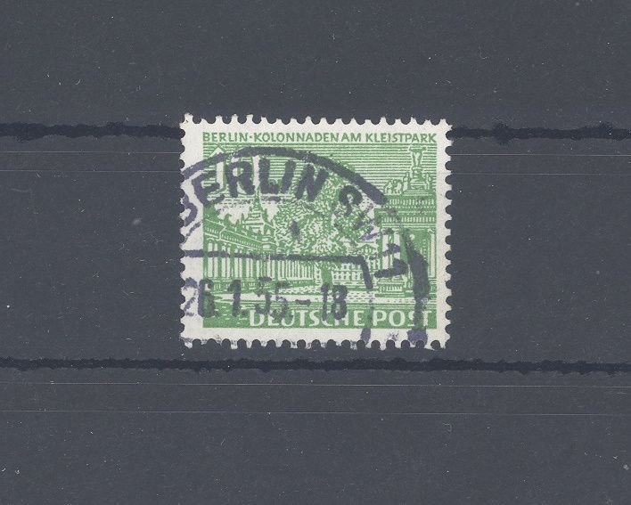 Berlin Michel Nummer 47 x , 10 Pfg. Bauten 1949 mit dem Wasserzeichen X gestempelt. Der Wert ist geprüft BPP.