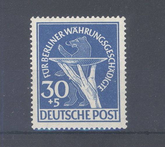 Berlin Mi.Nr. 70 I, die 30 Pfg. Freimarke Währungsgeschädigte 1949 mit dem Plattenfehler I **. Der Wert ist geprüft BPP, nette Ergänzung zur Sammlung.