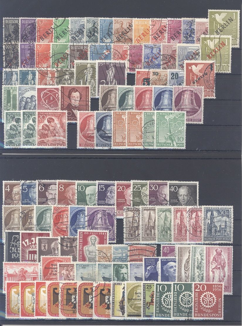 Berlin, umfangreicher gestempelter Posten aus den Jahren 1949/53 auf zwei Steckkarten, dabei auch einige Wellenstempel mit aber vielen besseren Werte und Sätze. Billigst!