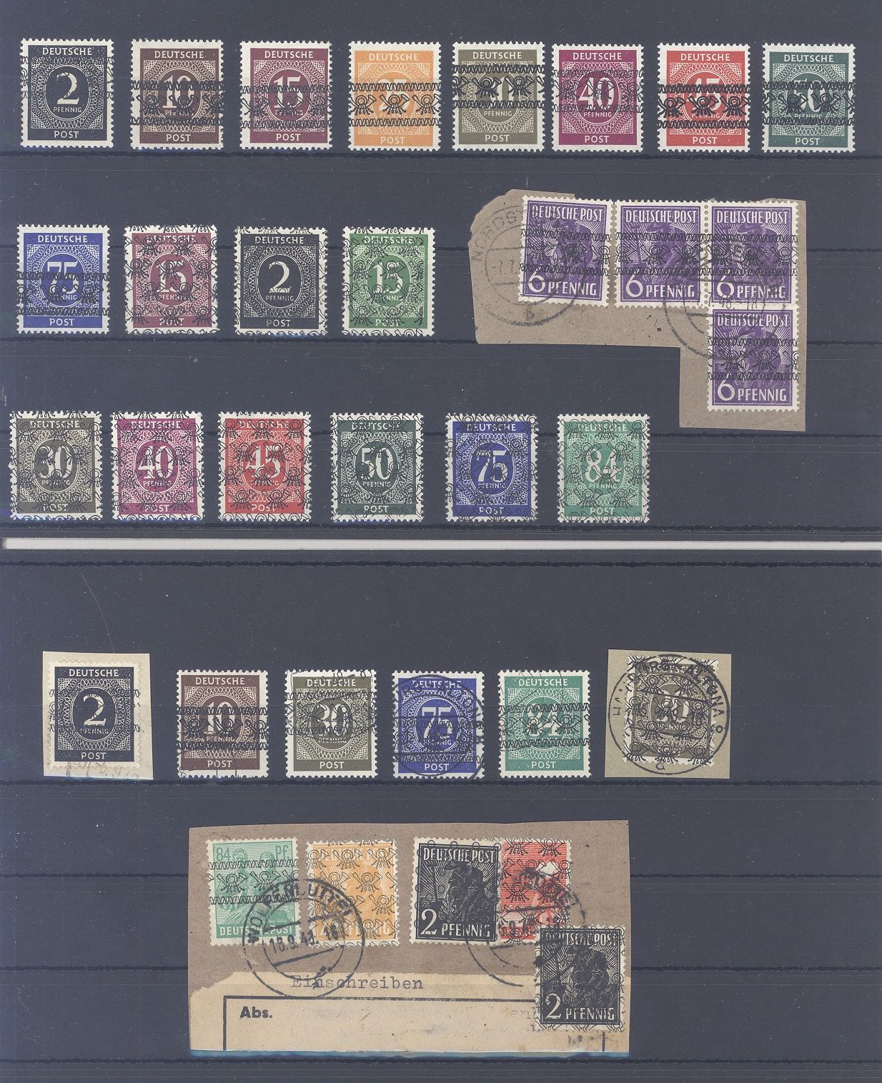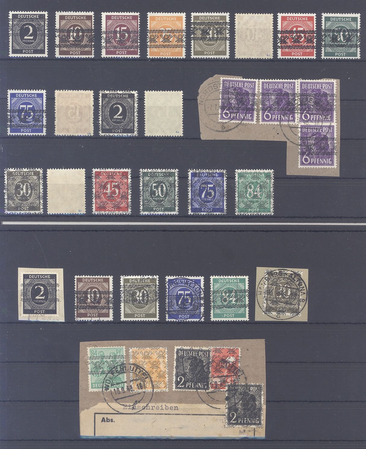 Bizone, **/gestempelter Posten aus Michel Nummer 52/68 auf zwei Steckkarten, einfach zusammengesteckt mit auch einigen signierten Werten und Briefstücken. Vollkommen unberechnet, sollte ein nettes Schnäppchen sein
