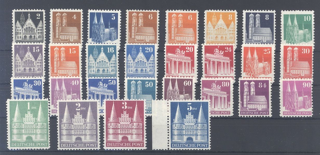 Bizone Michel Nummer 73/100 wg, Bauten weite Zähnung **.