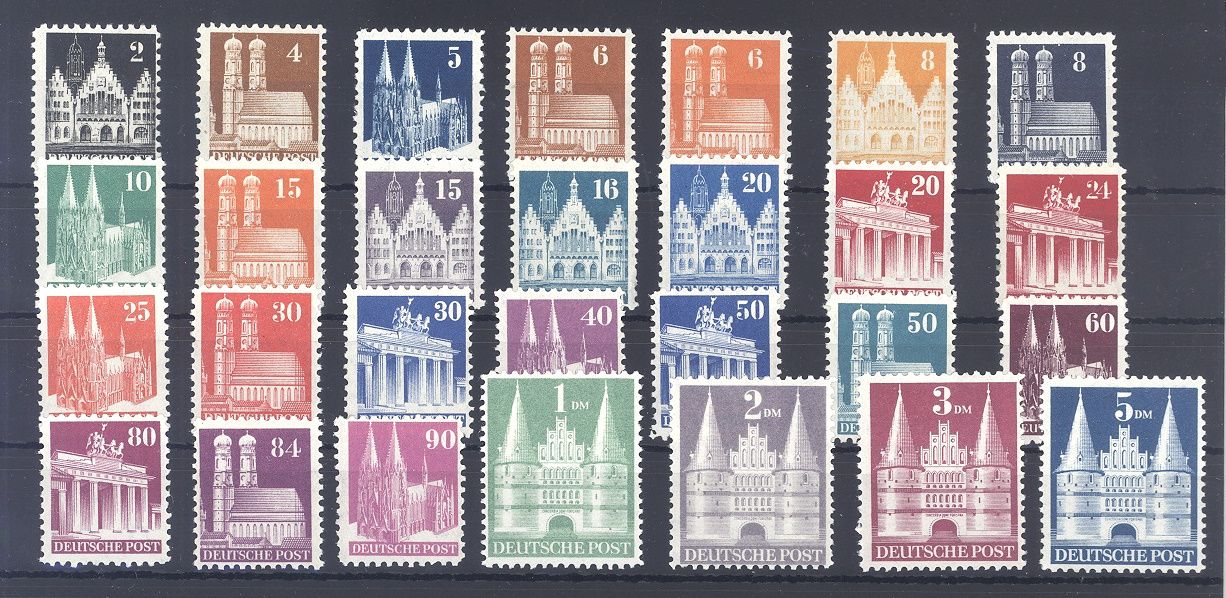 Bizone Michel Nummer 73/100 wg, Bauten weite Zähnung **/*, meist **.