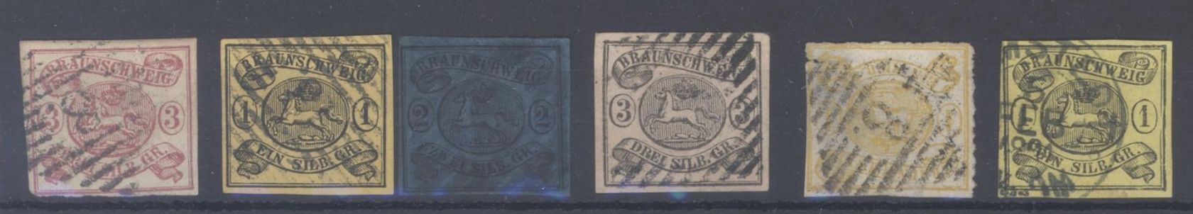 Kleines Lot auf Steckkarte Mi 3 vollrandig, 6-8 vollrandig, 11 (starke Mängel; Riss oben links), 14 vollrandig
