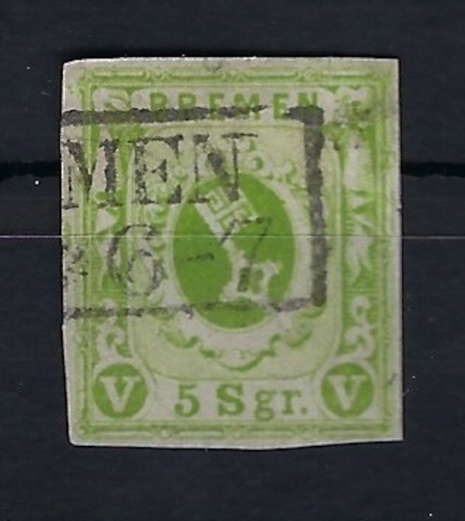Bremen Mi 4 a °, mit Einschränkung, links etwas eingerissen, ME 380€
