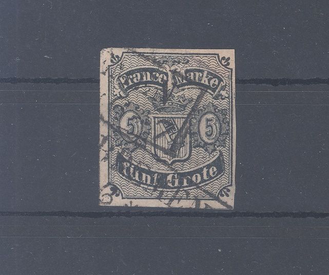 Bremen Michel Nummer 2, 5 Grote Freimarke 1856 gestempelt, ein ordentlicher Wert.