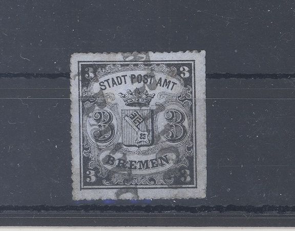 Bremen Michel Nummer 6x, 3 Grote Freimarke 1864 gestempelt mit einem hellen Bereich unten, ausgebessert, Vorderseitig aber doch ein sehr vernünftiger Wert. Der Wert ist geprüft mit Altprüfung, selten einmal angeboten!