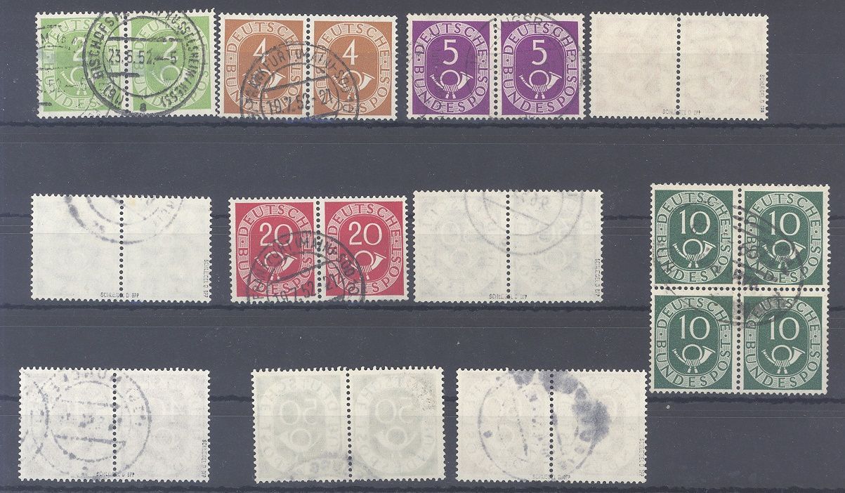 Bund, 10 verschiedene gestempelte Posthorn Paare als Posten, dabei auch ein Viererblock, hier wurden nur 2 Paare gerechnet. Die 6, 30, 40, dieses etwas angetrennt, einige Paare sind geprüft BPP, in diesem Umfang selten einmal angeboten.