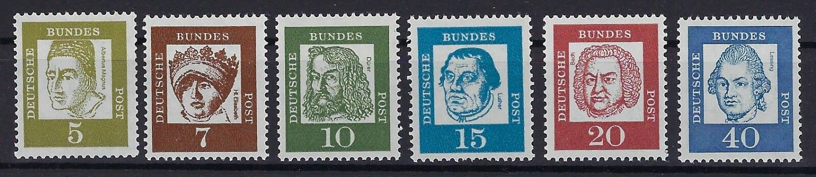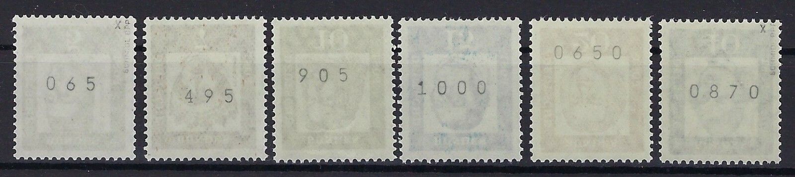 Bund BD Rollenmarken Mi 347-355, 6 Werte komplett postfrisch in Papier X, einwandfreie Qualität, Mi 347 und 355 geprüft Schlegel BPP