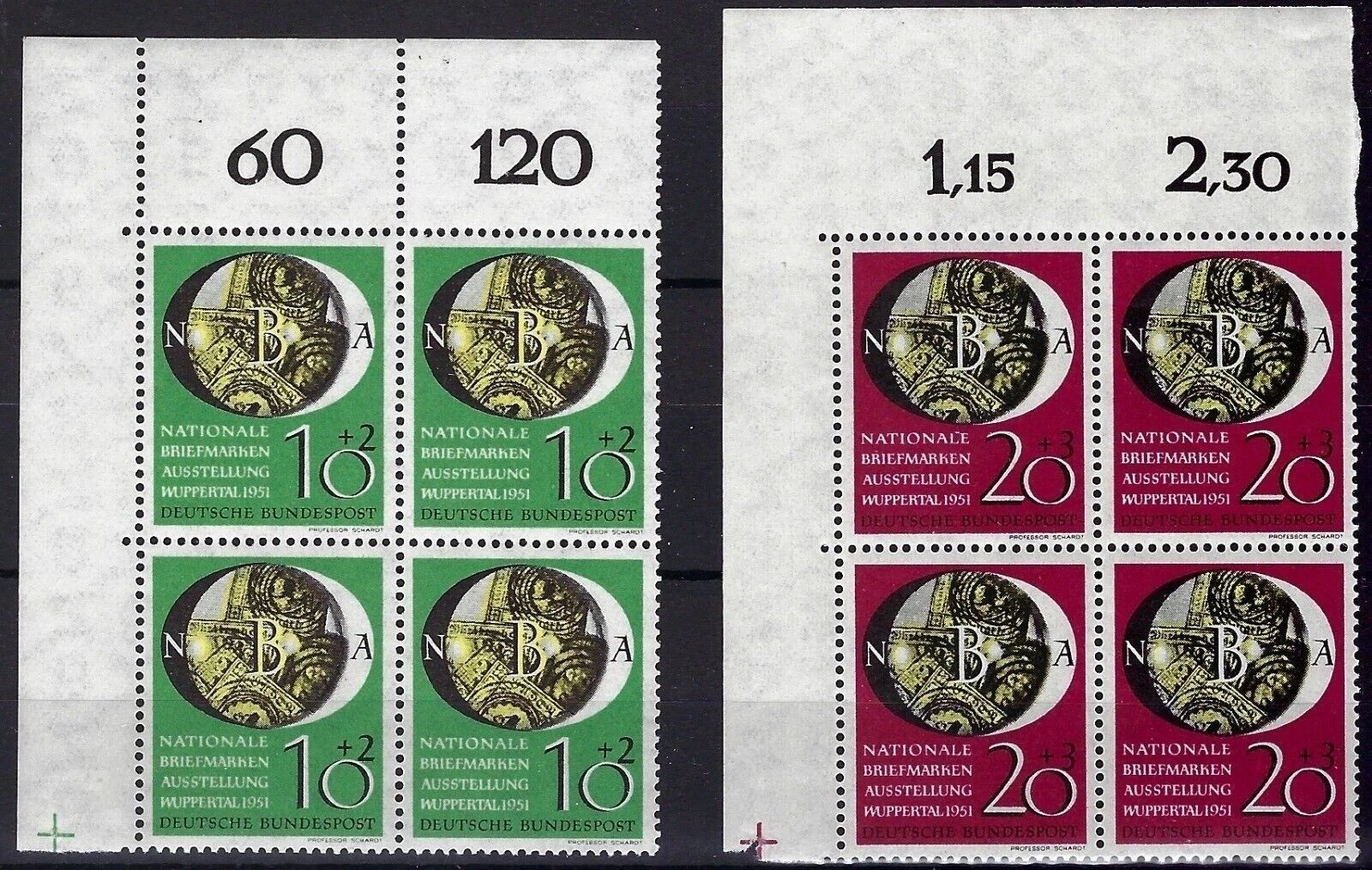 Bund Mi 141-142 ** Viererblock Eckrand OL ungefaltet