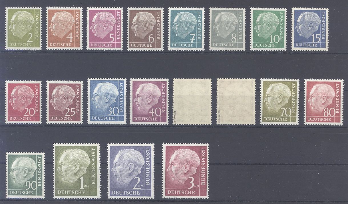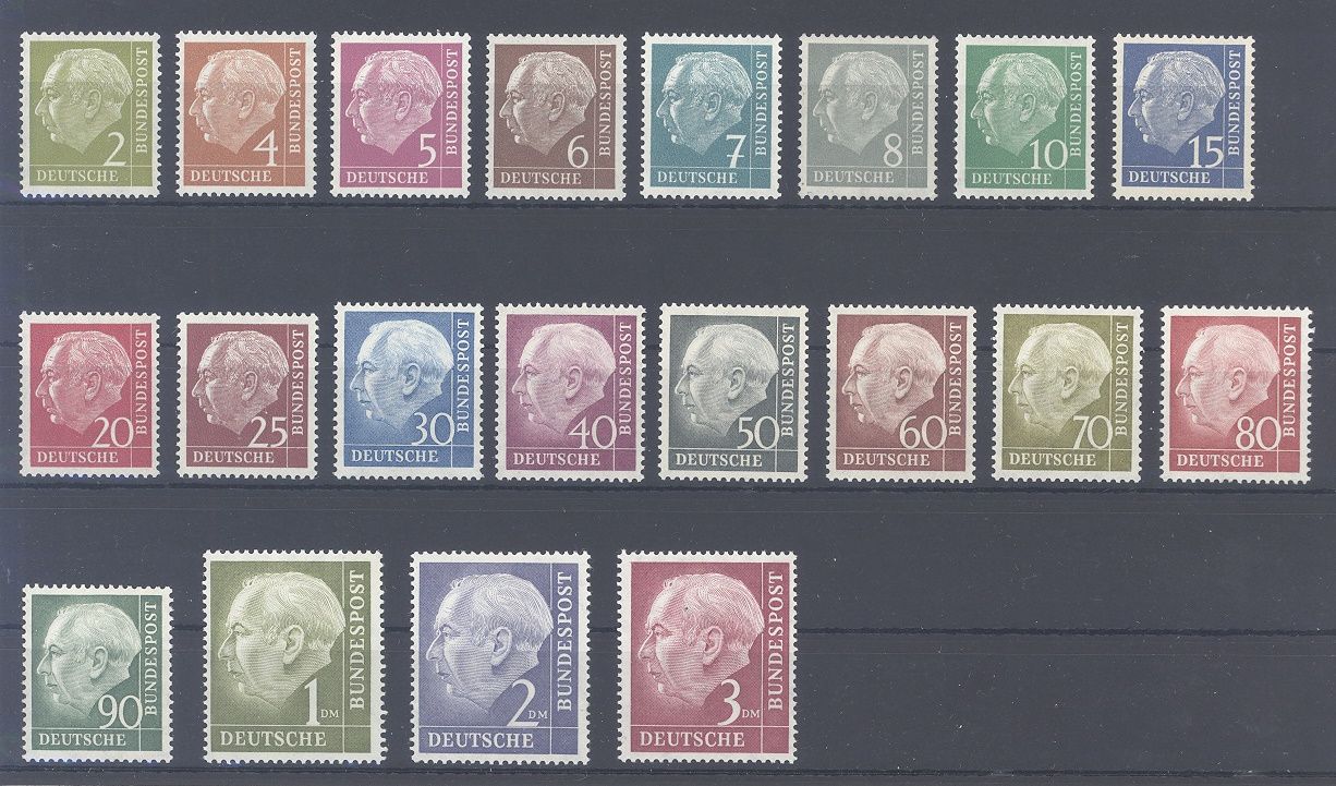 Bund Michel Nummer 177/96, Heuss I **, die beiden Hauptwerte Michel Nummer 189/90 sind geprüft BPP.