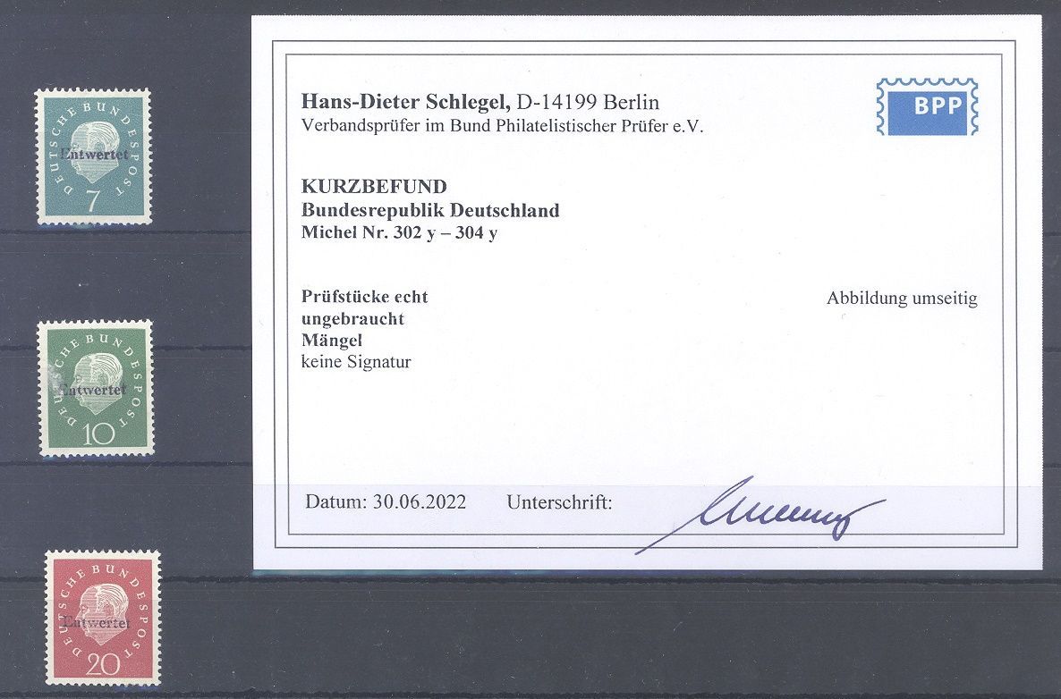 Bund Michel Nummer 302-304y aus Heuss III ungebraucht * mit Qualitätseinschränkungen, aber doch insgesamt in Ordnung. Es liegt ein Befund BPP vor, hat bereits einiges gekostet, der Michel für ** beträgt 1500,00 Euro, selten einmal angeboten!