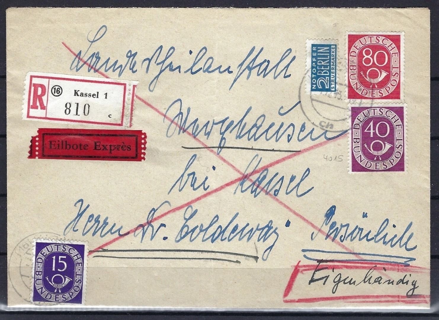 Bund Posthorn R-Brief-Eilboten-Eigenhändig portogerecht Fernbrief