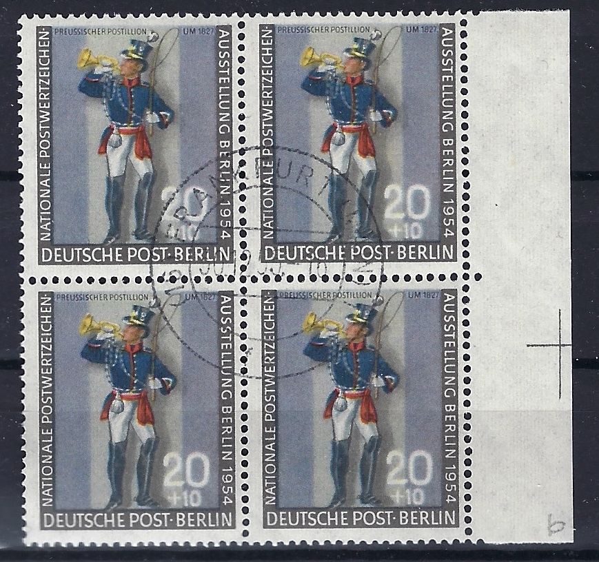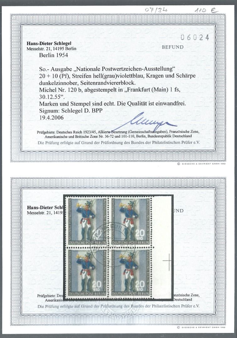 Berlin Mi 120 b im Viererblock get. Frankfurt Main 1 fs, in Luxusqualität mit Originalgummierung, Befund Schlegel BPP
