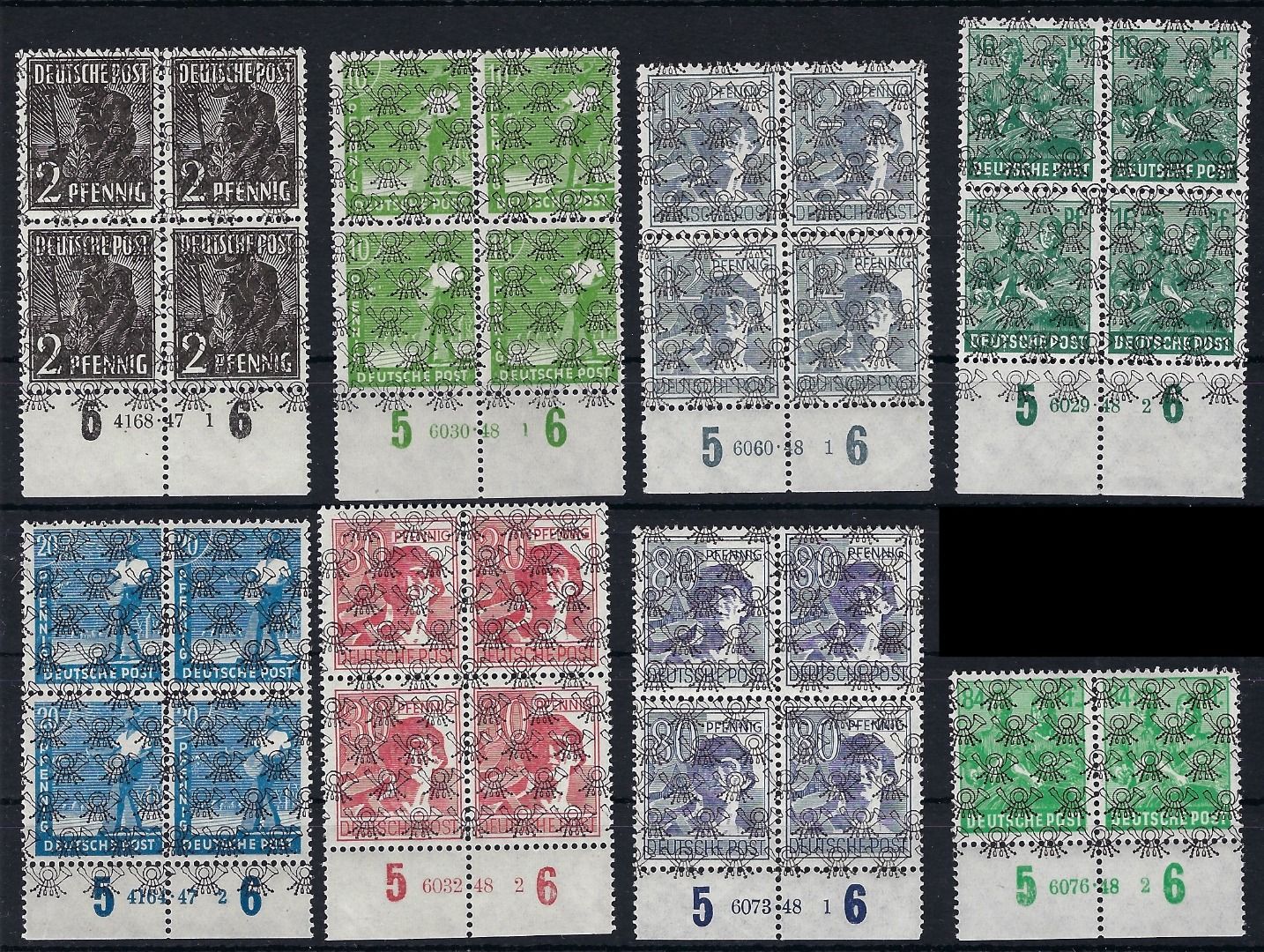 C) Bizone 8 Ausgaben Arbeiterserie mit HAN Nummern meist VB, ME 1.290€ Im Details: 36 II, 39 II, 40 II, 42 II, 43 II, 46 II, 50 II, 51 II, alle ungefaltet und unzertrennt