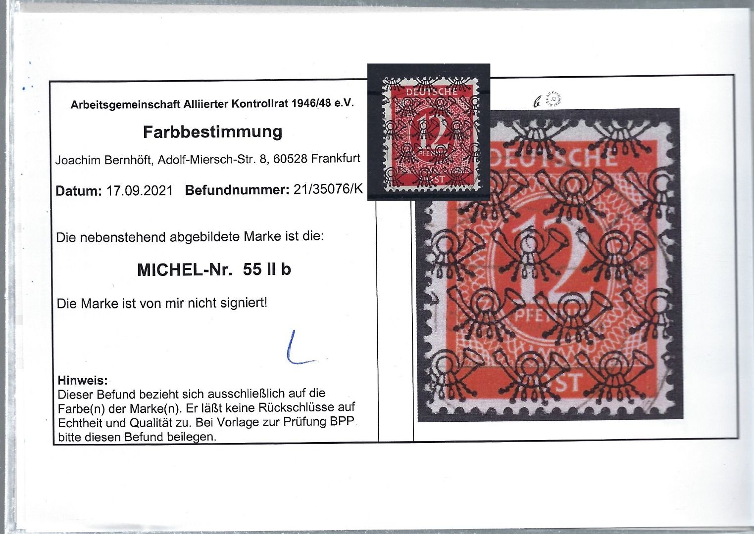 C) Bizone Mi 55 II b ° einwandfrei, Farbbestimmung Bernhöft und zusätzlich geprüft Schlegel BPP, ME 180€
