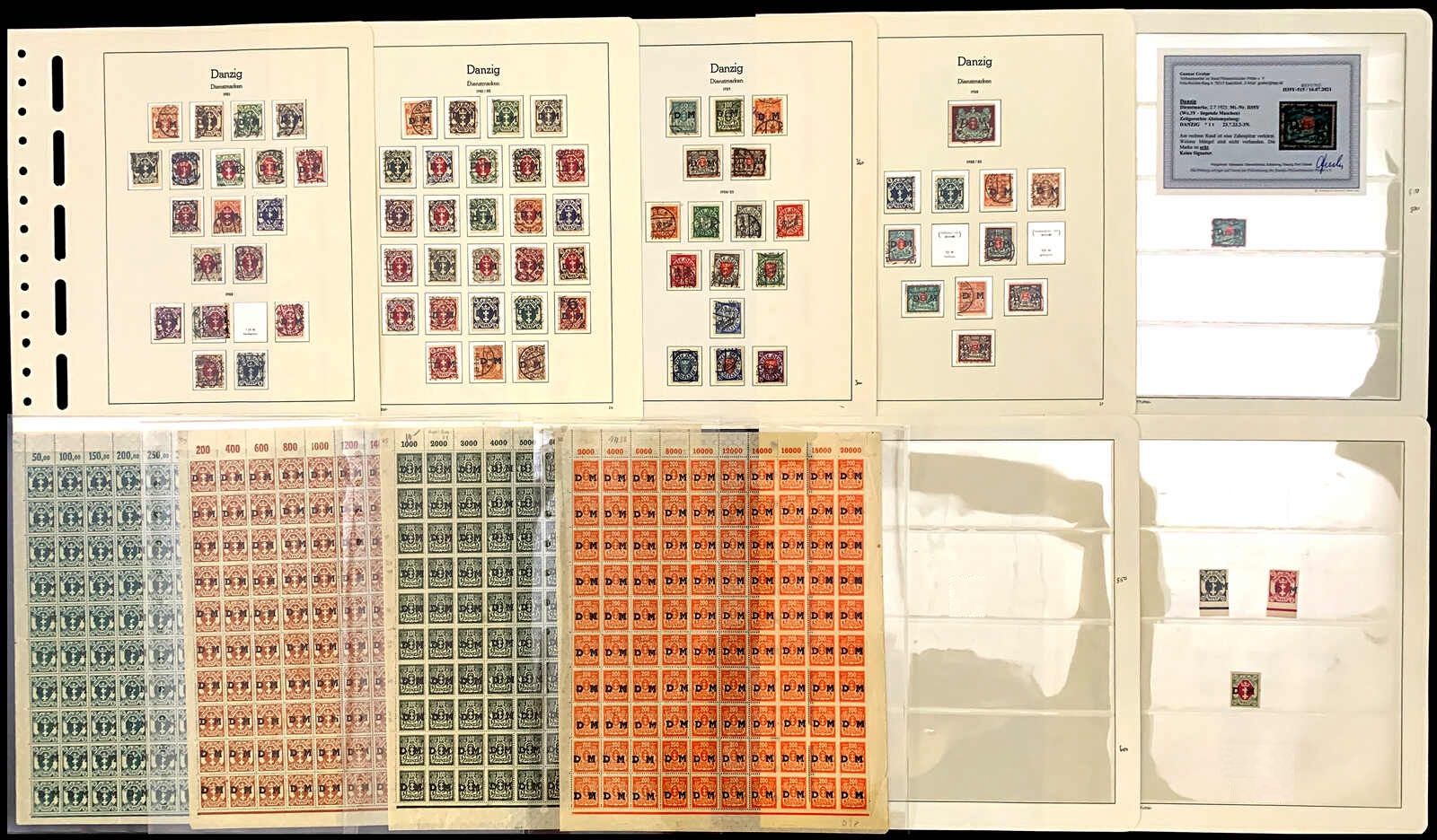 Danzig Dienstmarken, umfangreiche Partie auf losen Blättern gestempelt und postfrisch, darunter ungezählte Marken und 4 Schalterbögen, geringer Anteil in etwas unterschiedlicher Qualität. Die Ausgaben sind alle abgebildet