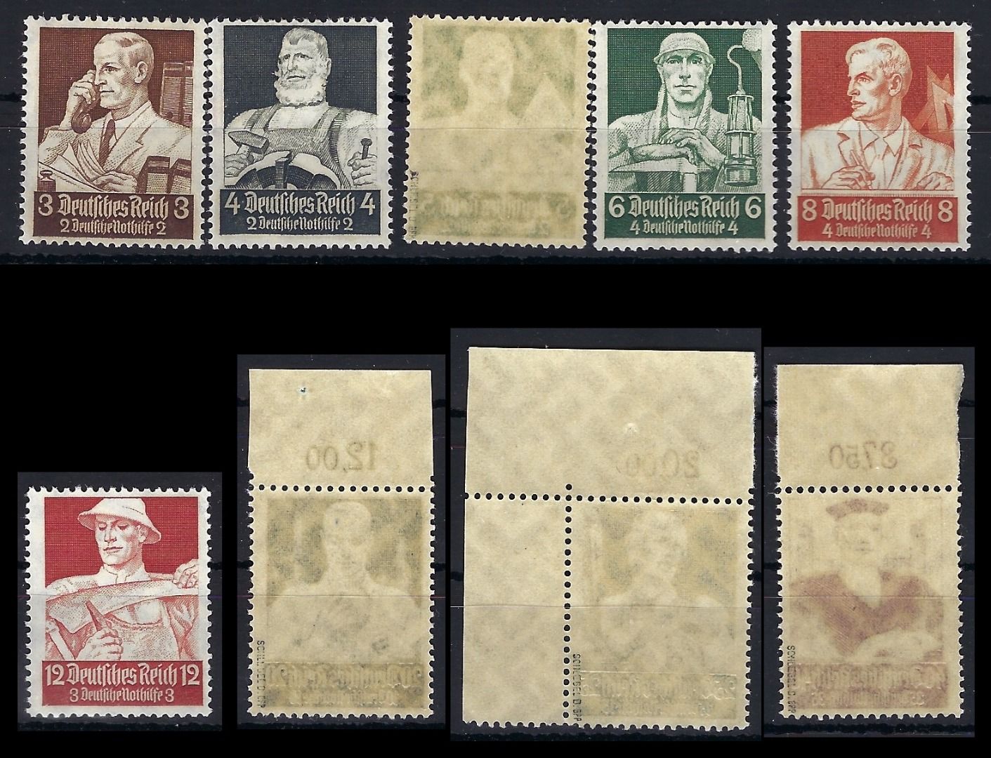 Mi 558, 562,653,564 jeweils geprüft Schlegel BPP, Mi 562 Oberrand (Falrest im OR, 563 Eckrand OR, 564 Oberrand
