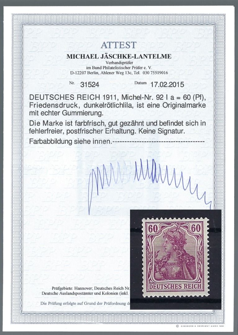 DR Germania Mi 92 I a ** einwandfrei, mir FFA Jäschke-L BPP, ME 800€