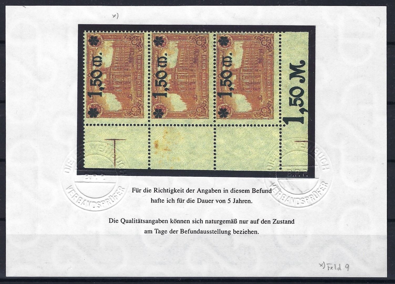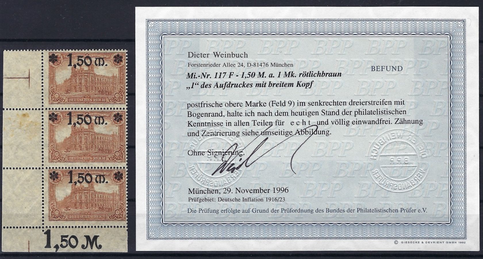 DR Mi 117 F **, senk. Dreierstreifen, Befund Weinbuch BPP, ME 220€