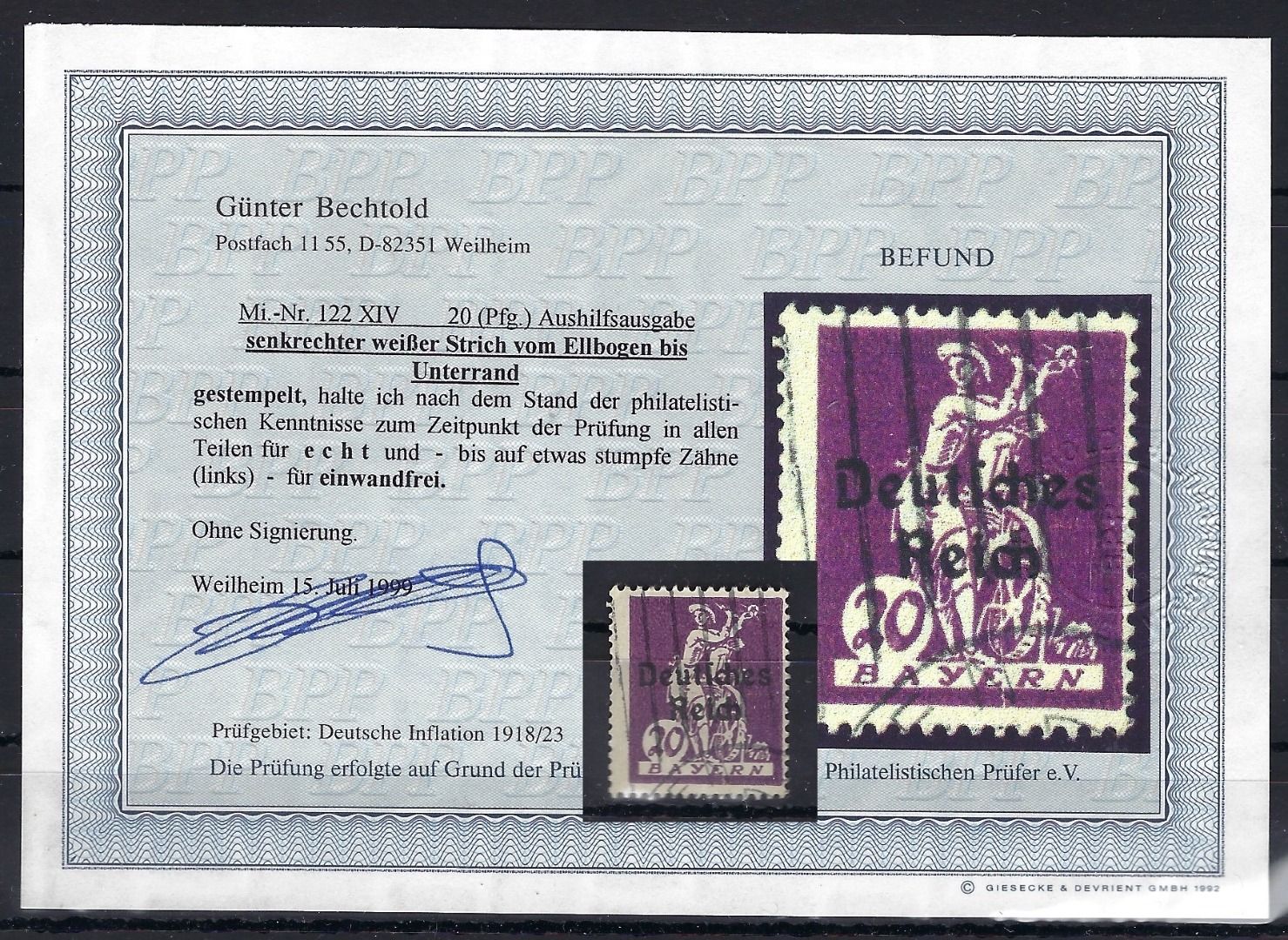 C) DR Mi 122 ° mit PF XIV, Befund Bechtold BPP, ME 450€