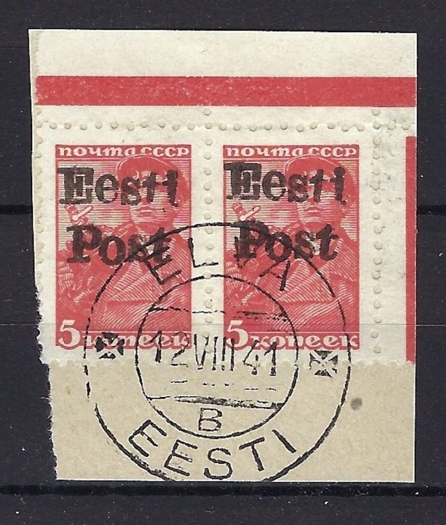 D. Besetzung Estland-Elwa Mi 5 ° Paar auf Briefstück, gep. Krischke