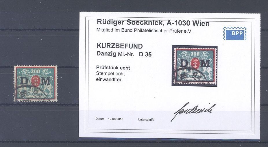 Danzig Dienst Michel Nummer 35, 300 Mark Freimarke 1922 gestempelt. Es liegt ein Befund BPP vor, ist mit eingescannt, hat bereits einiges gekostet.