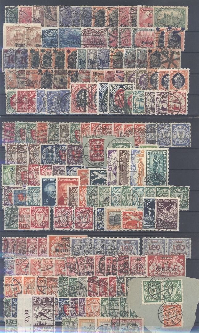 Danzig, enormer gestempelter Posten auf neun Steckkarten, einfach zusammengesteckt. Vollkommen unberechnet, sollte bereits aufgrund der Materialfülle ein nettes Schnäppchen sein, sechs der neun Seiten sind eingescannt.