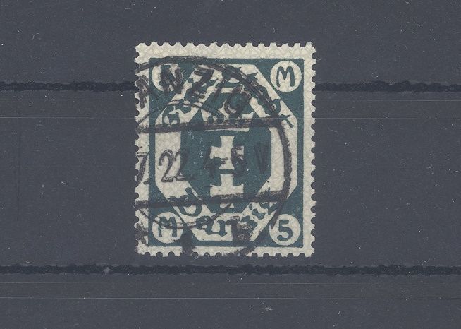 Danzig Michel Nummer 108y, 5 Mark Freimarke 1922 mit dem guten Wasserzeichen y gestempelt. Der Wert ist signiert.