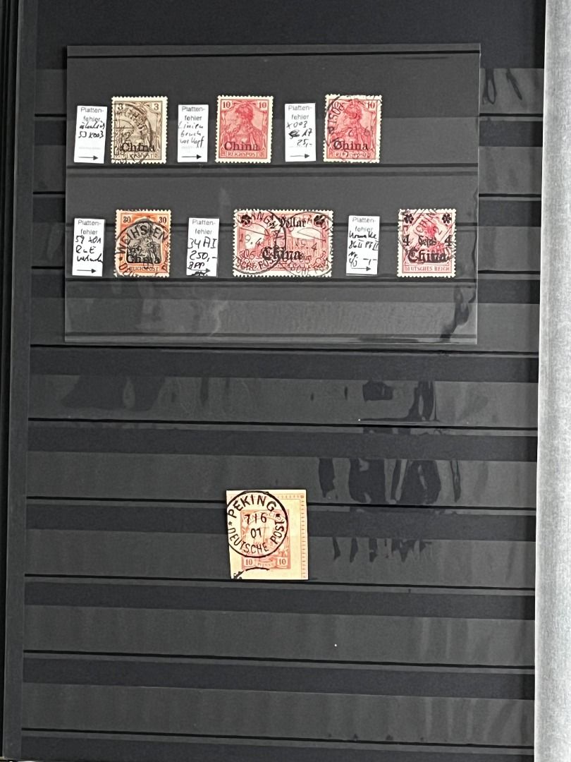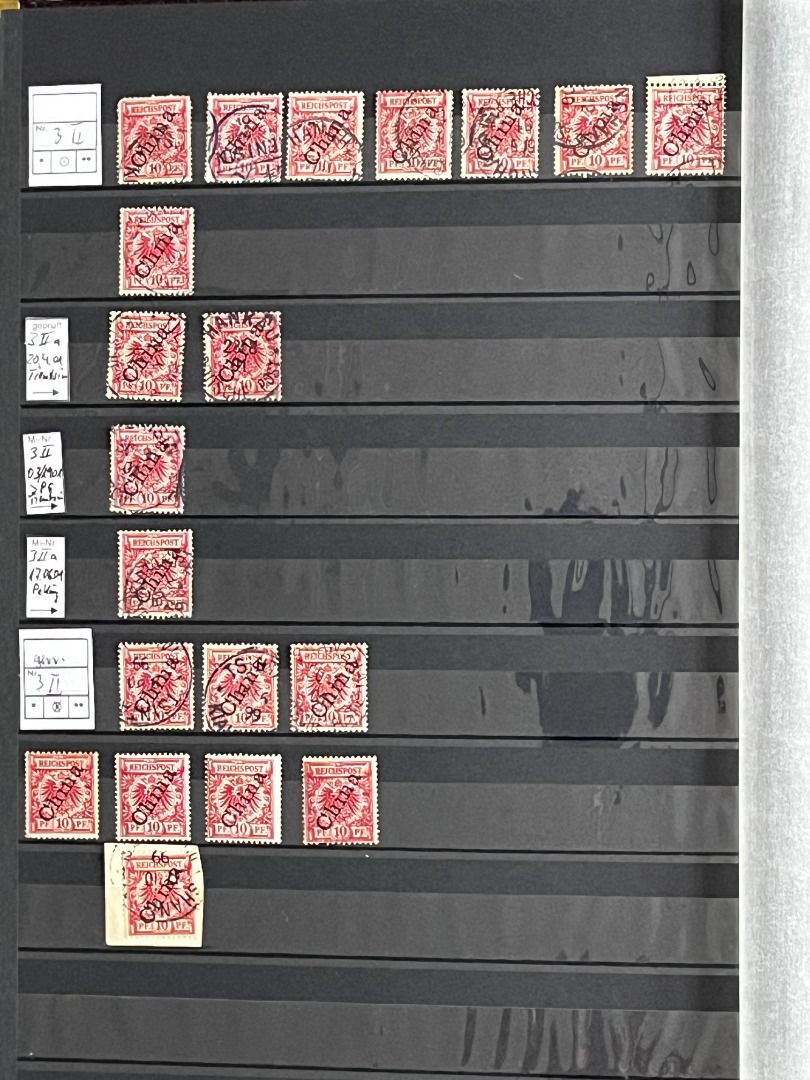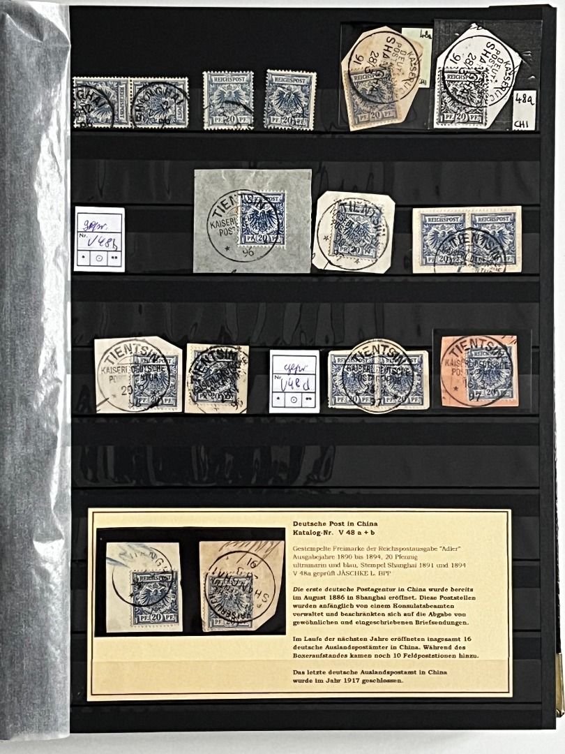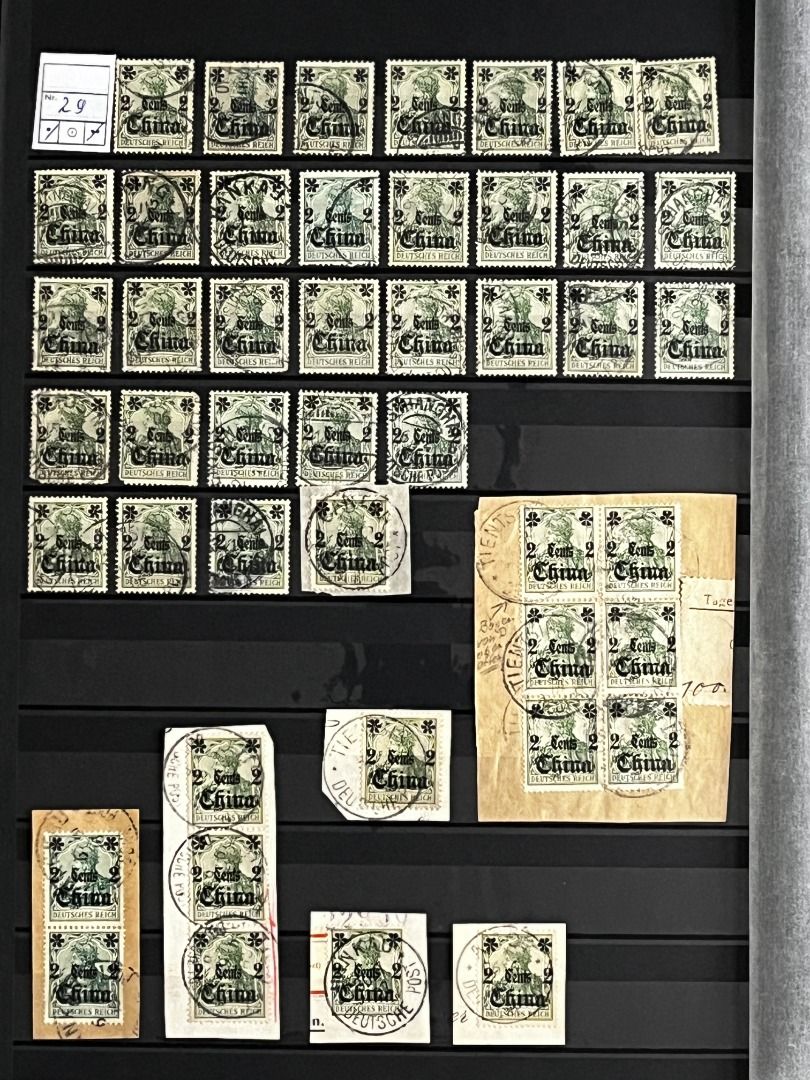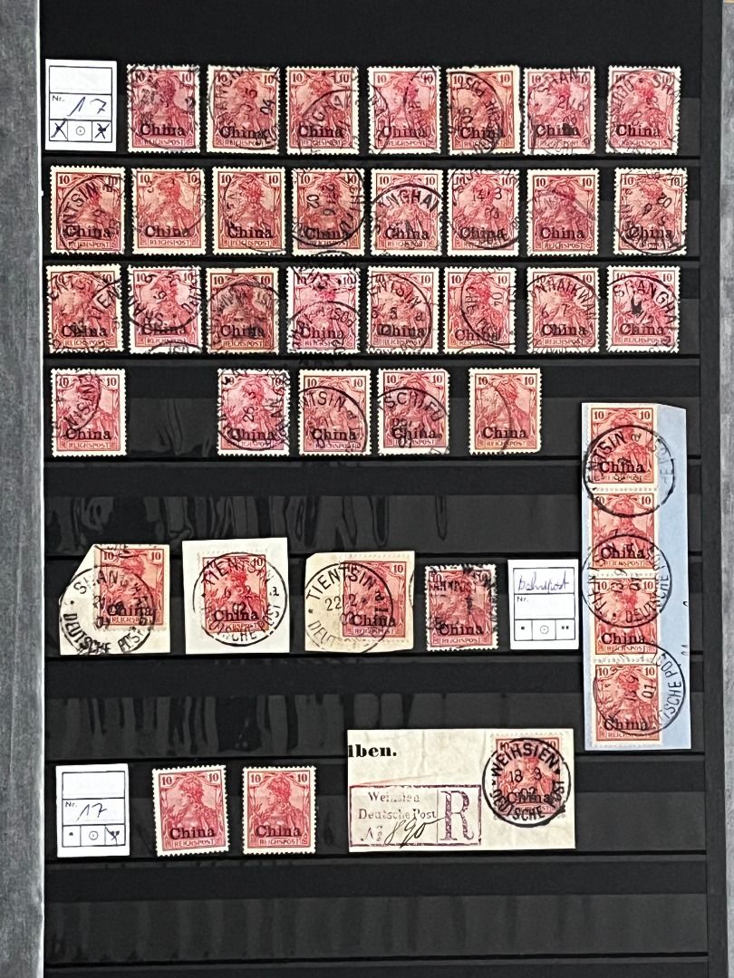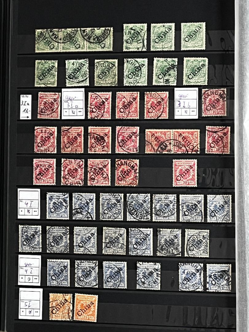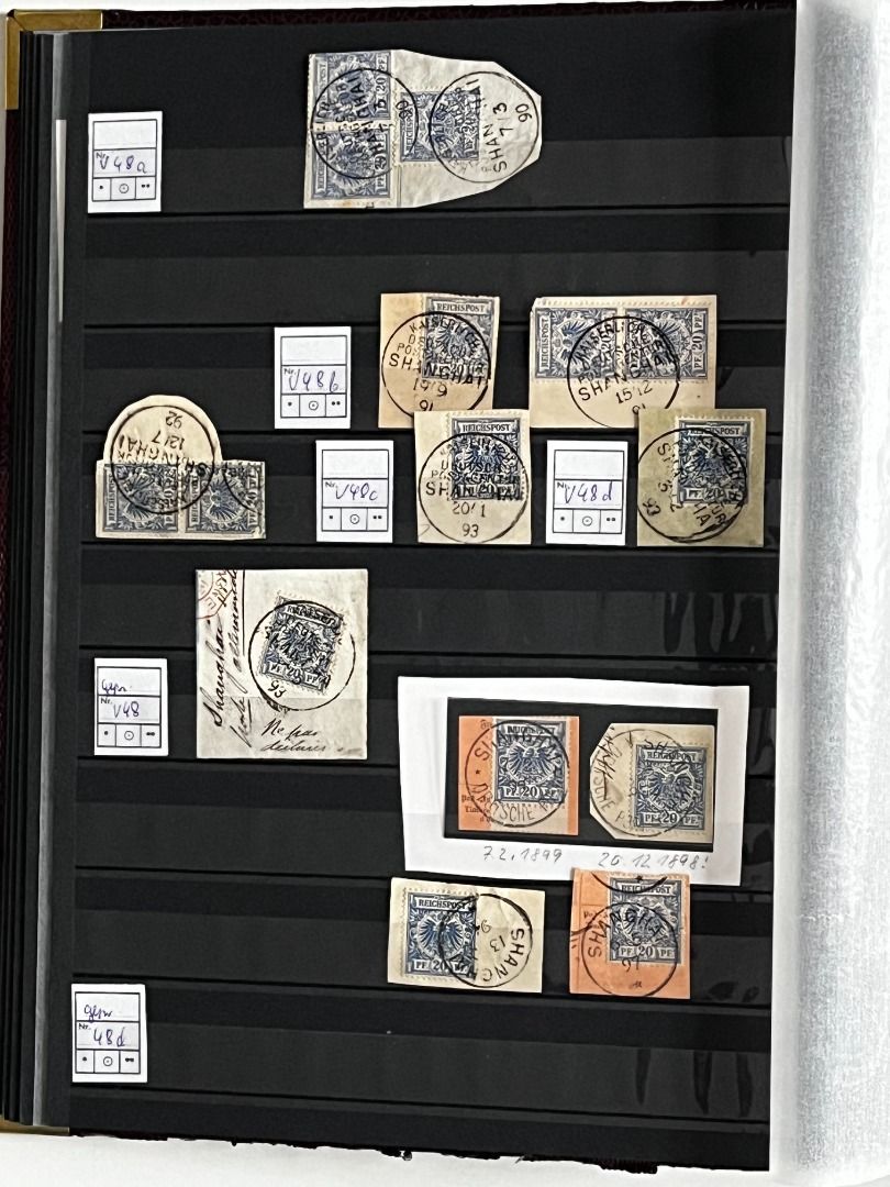 Deutsche Auslandspostämter - China 1886-1919 */**/gest.: Reichhaltiger Bestand im Einsteckalbum ab den Vorläufern mit vielen geprüften Ausgaben, viele schöne Abstempelungen, Nr. PV a im 6er-Block gest. Fotoattest Jäschke-Lantelme BPP, etwas Deutsche Seepost usw. Michel 15.000,-€.