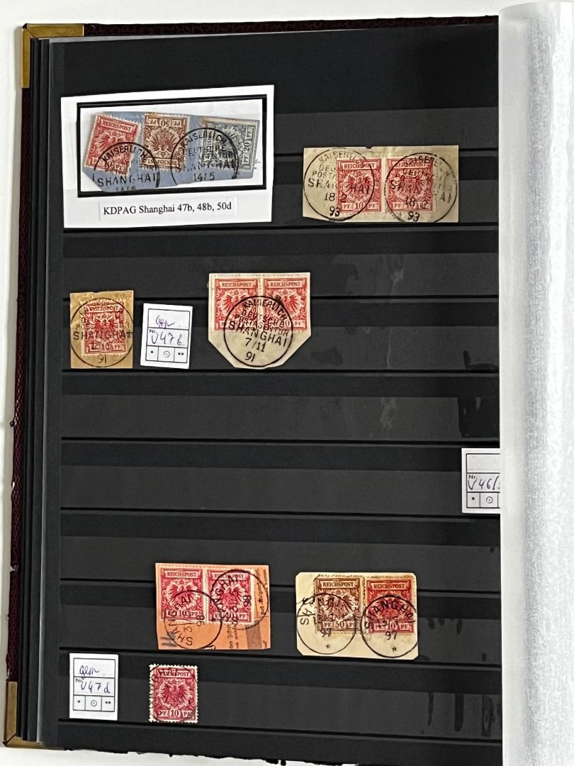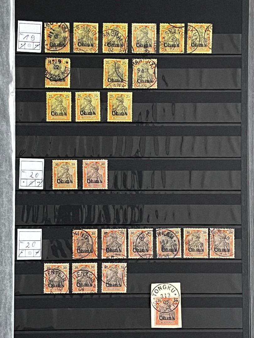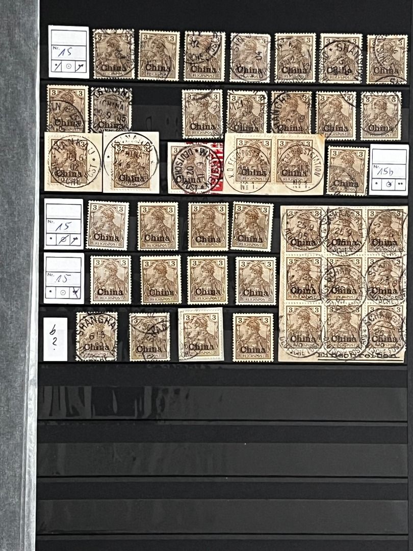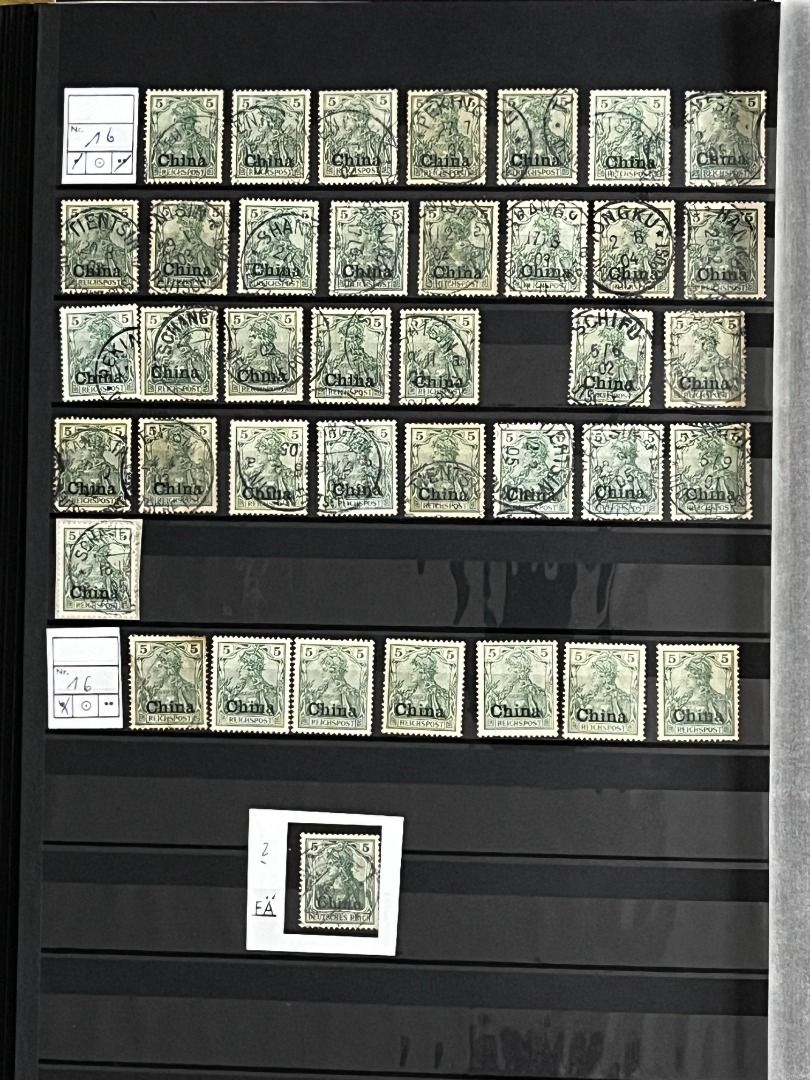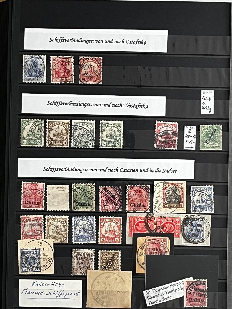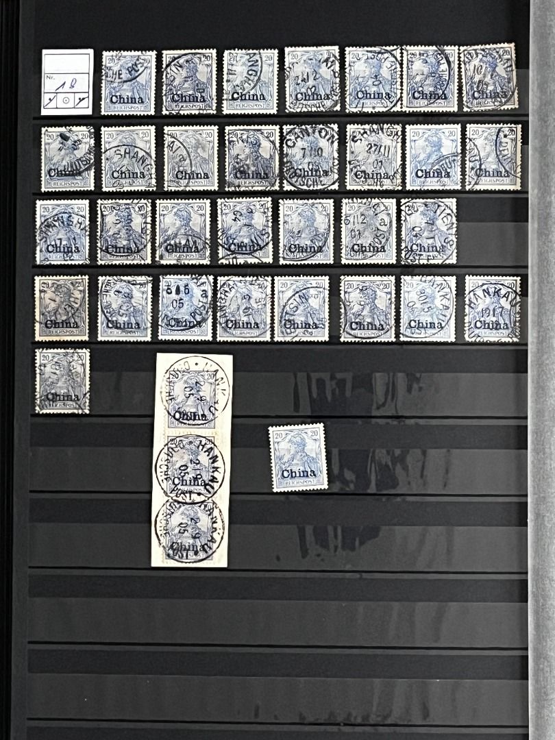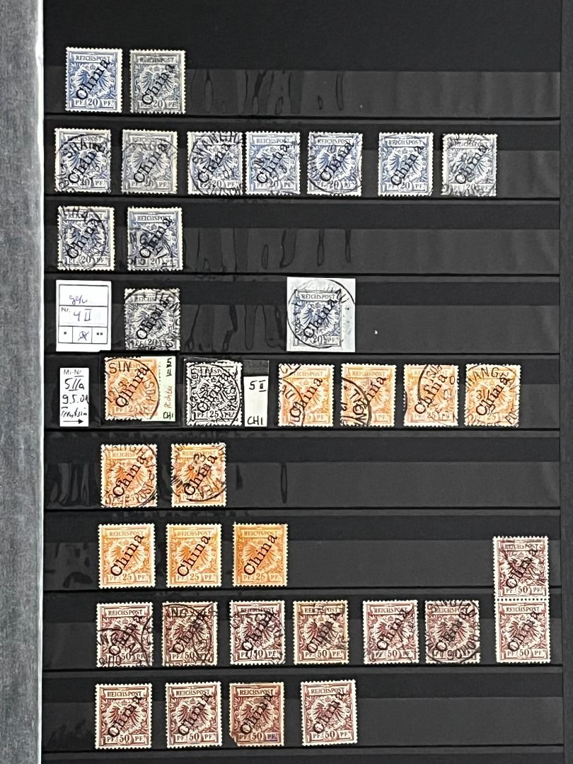 Deutsche Auslandspostämter - China 1886-1919 */**/gest.: Reichhaltiger Bestand im Einsteckalbum ab den Vorläufern mit vielen geprüften Ausgaben, viele schöne Abstempelungen, Nr. PV a im 6er-Block gest. Fotoattest Jäschke-Lantelme BPP, etwas Deutsche Seepost usw. Michel 15.000,-€.