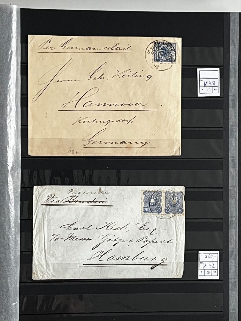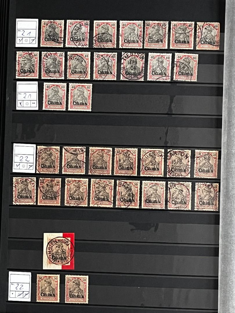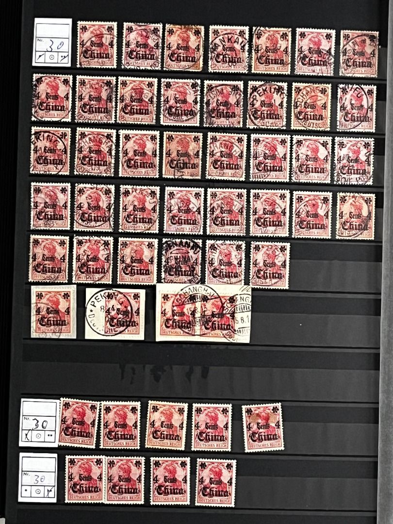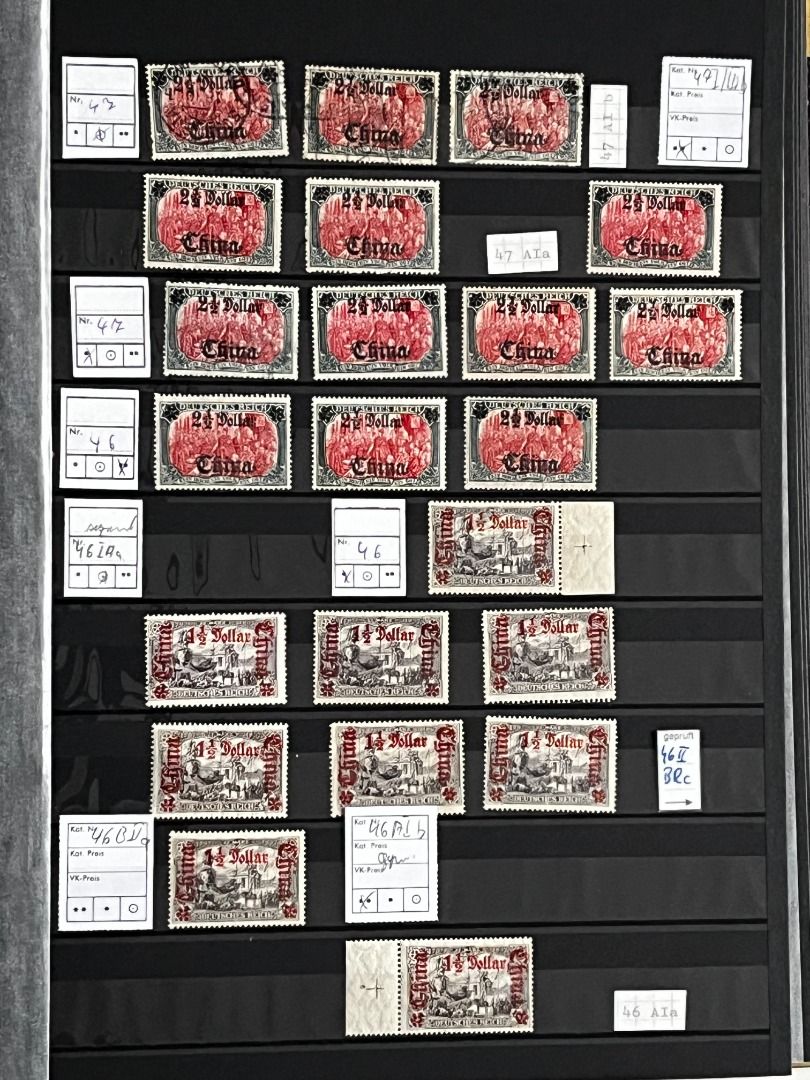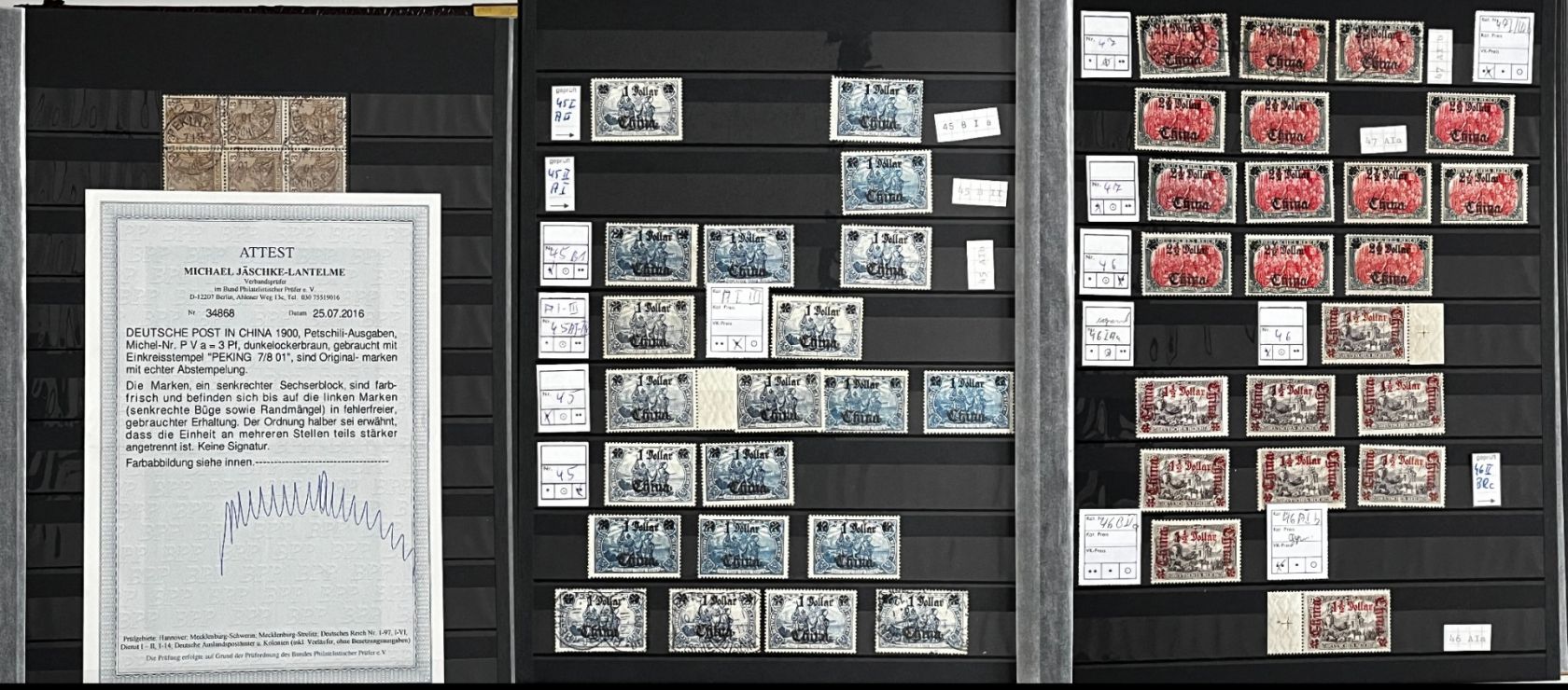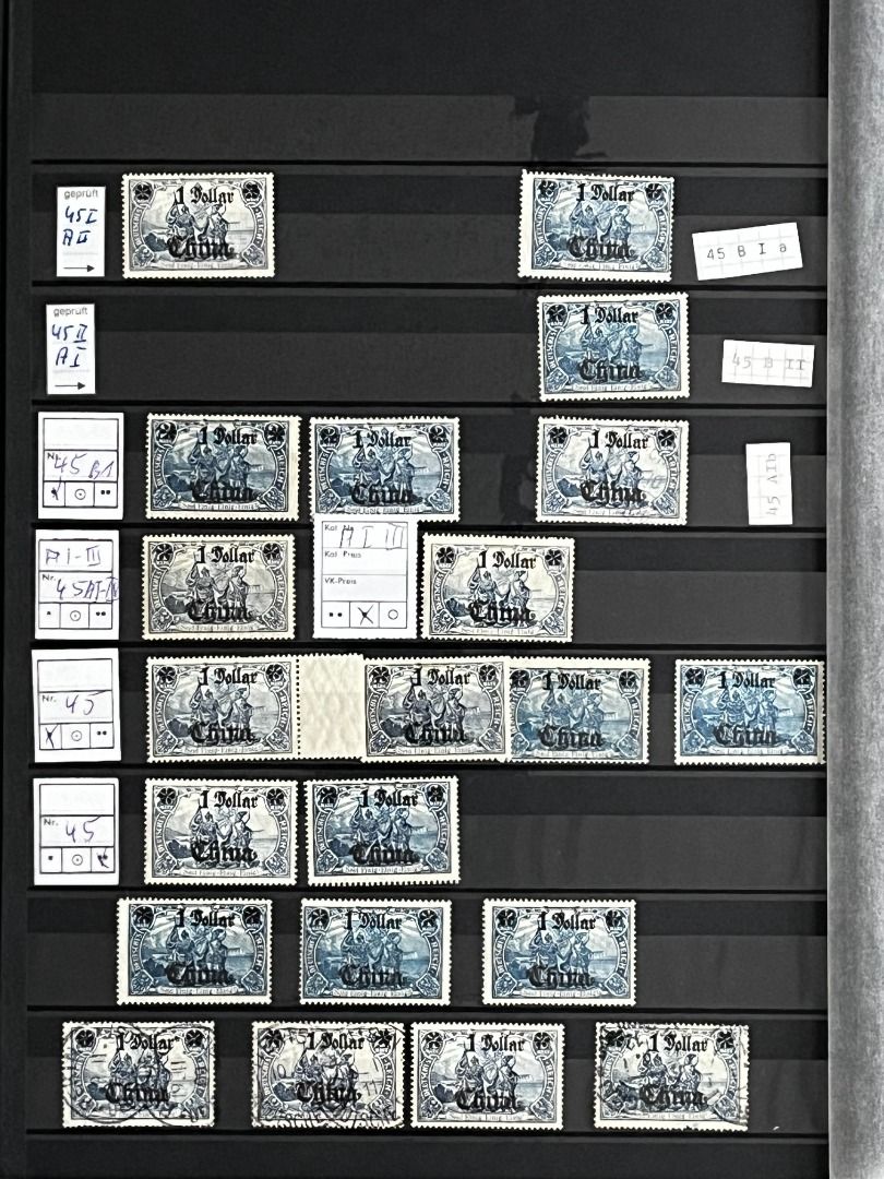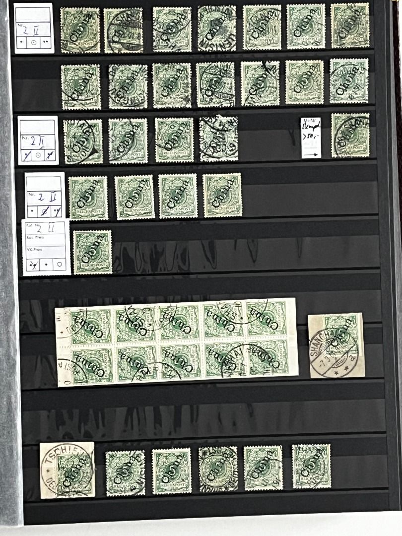 Deutsche Auslandspostämter - China 1886-1919 */**/gest.: Reichhaltiger Bestand im Einsteckalbum ab den Vorläufern mit vielen geprüften Ausgaben, viele schöne Abstempelungen, Nr. PV a im 6er-Block gest. Fotoattest Jäschke-Lantelme BPP, etwas Deutsche Seepost usw. Michel 15.000,-€.